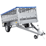 Einachsiger Anhänger auf Blattfedern 264x125 UNITRAILER FORCE 264/R KIPP mit Gitterseitenwänden, H-0-Rahmen und blauer Plane