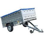 Unitrailer GARDEN TRAILER 230 FD Pkw-Anhänger mit Stützrad, zusätzlichen Bordwänden und blauer Plane