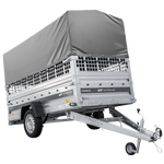 Einachsiger Anhänger auf Blattfedern 264x125 UNITRAILER FORCE 264/R KIPP mit Gitterseitenwänden, H-0-Rahmen und blauer Plane