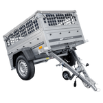 GARTENANHÄNGER 230 KIPP MIT STÜTZRAD, GITTERWAND UND GRAUER FLACHPLANE