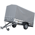 GARDEN TRAILER 264 KIPP MIT STÜTZRAD, H1100-HOCHSPRIEGEL UND GRAUER PLANE