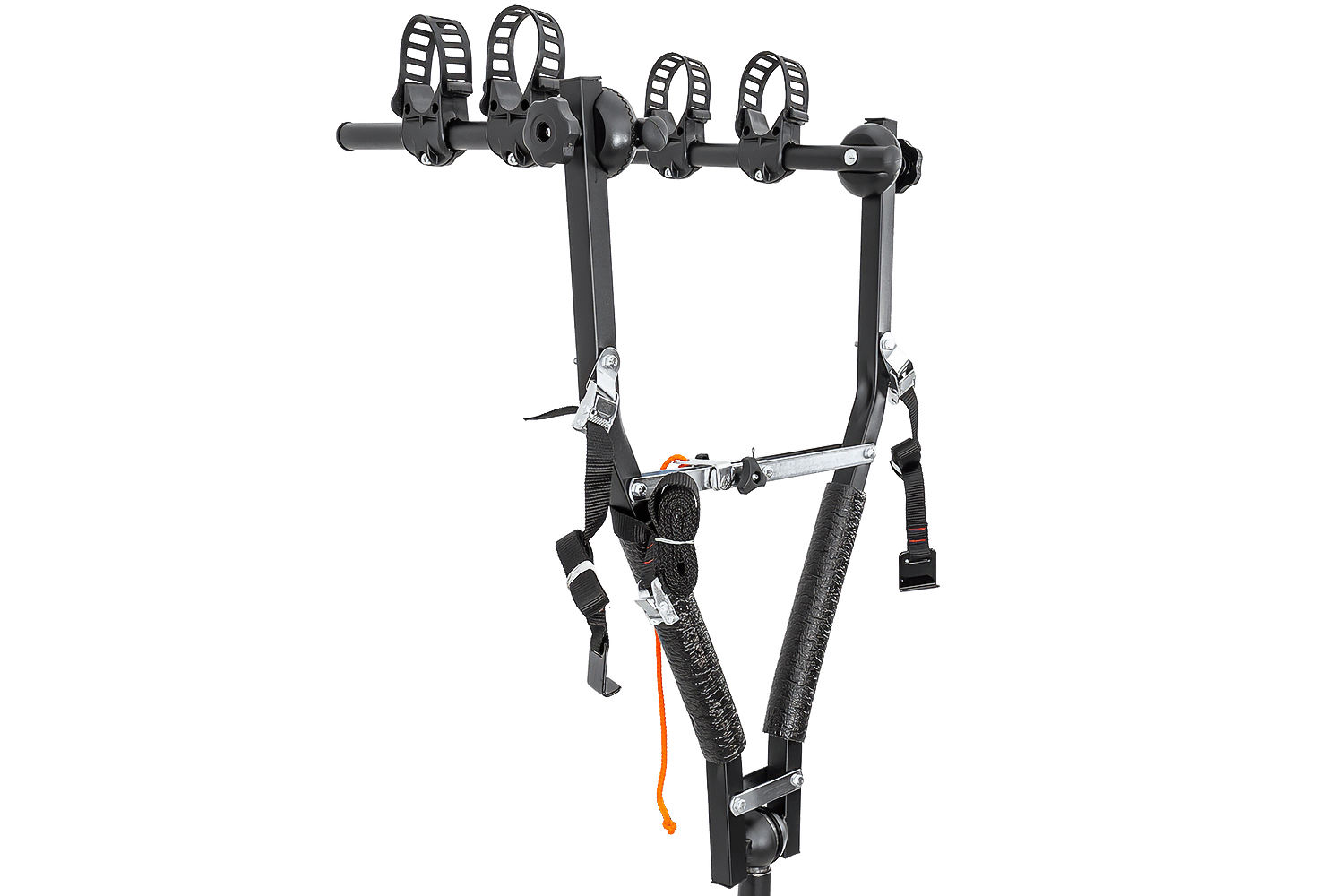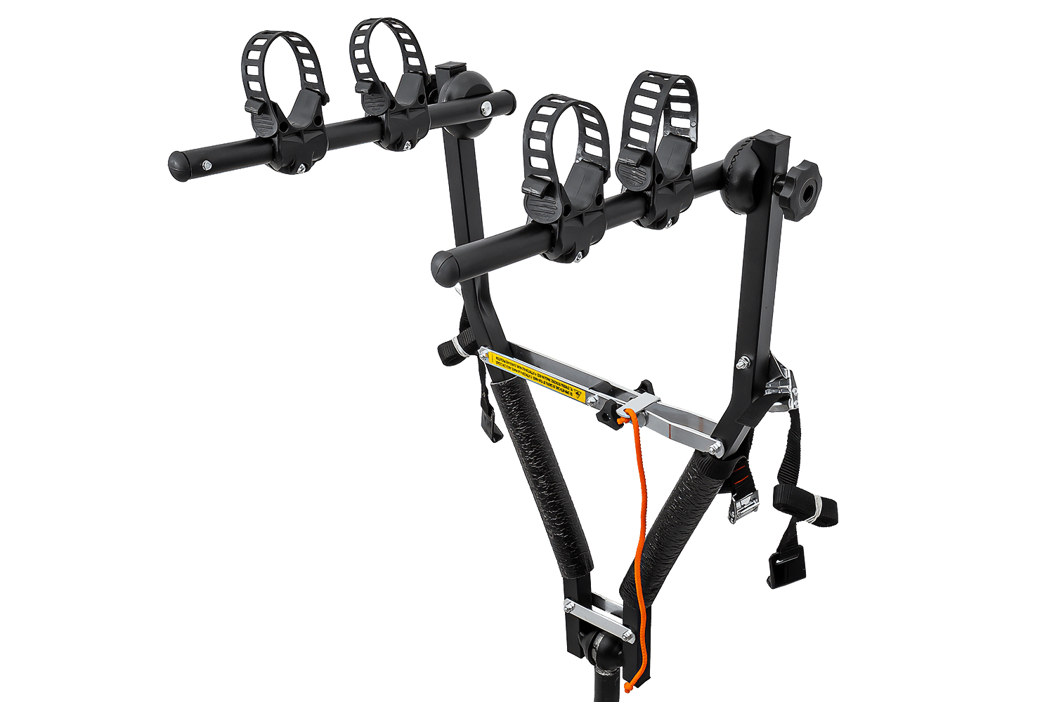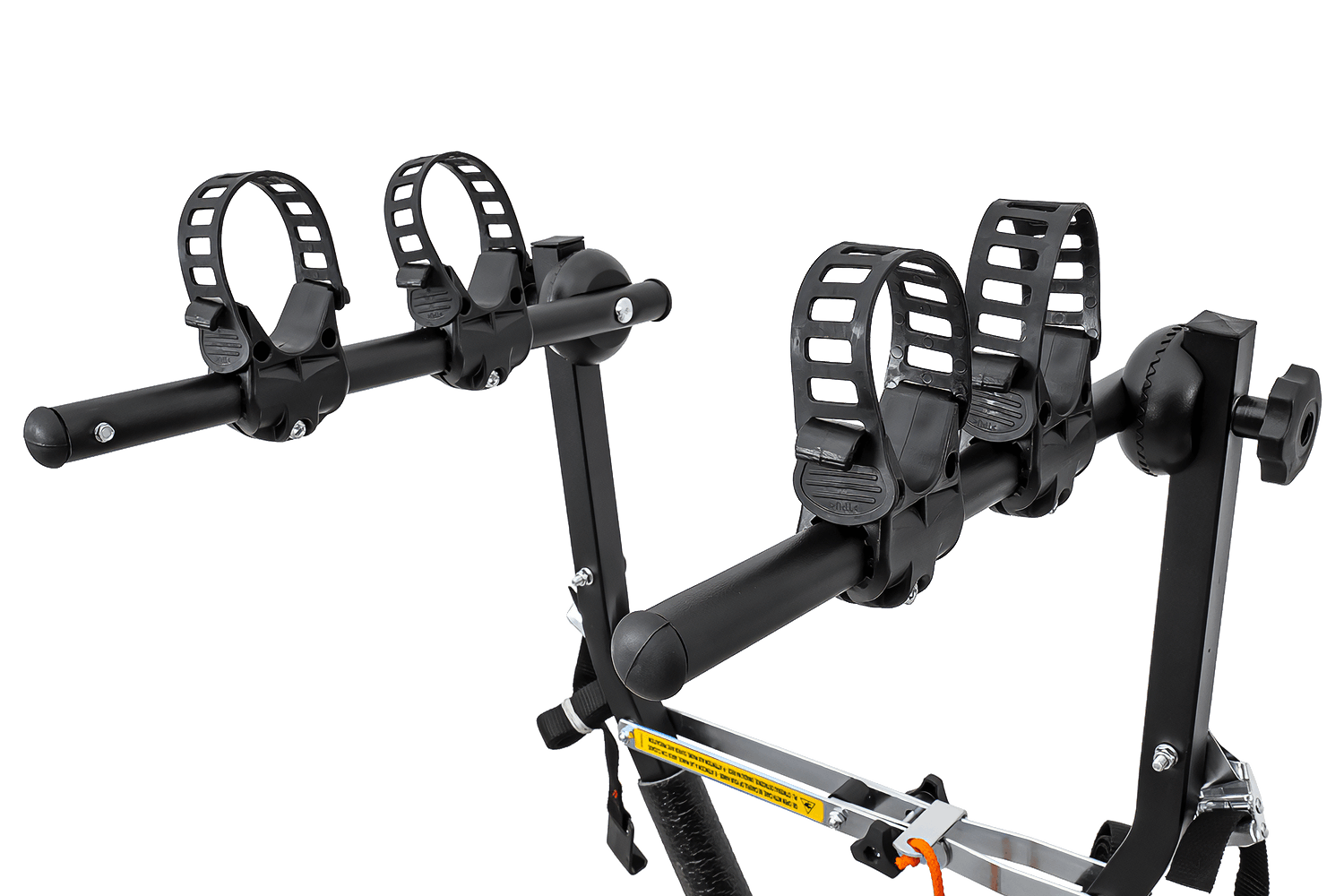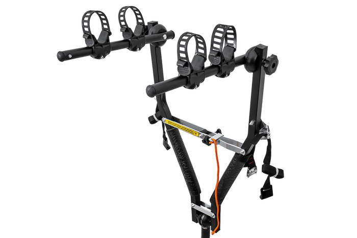 Ein großer Vorteil dieses Gepäckträgers ist sein durchdachtes Befestigungssystem. Jedes Fahrrad sitzt sicher in der dafür vorgesehenen Halterung , die mit einem robusten, verstellbaren Gummiband gesichert ist. So können Sie Fahrräder mit breiten und schmalen Rahmen effizient transportieren.