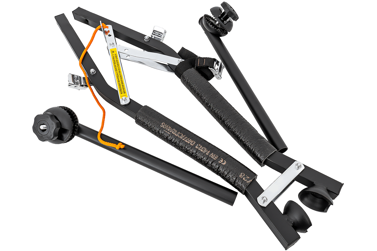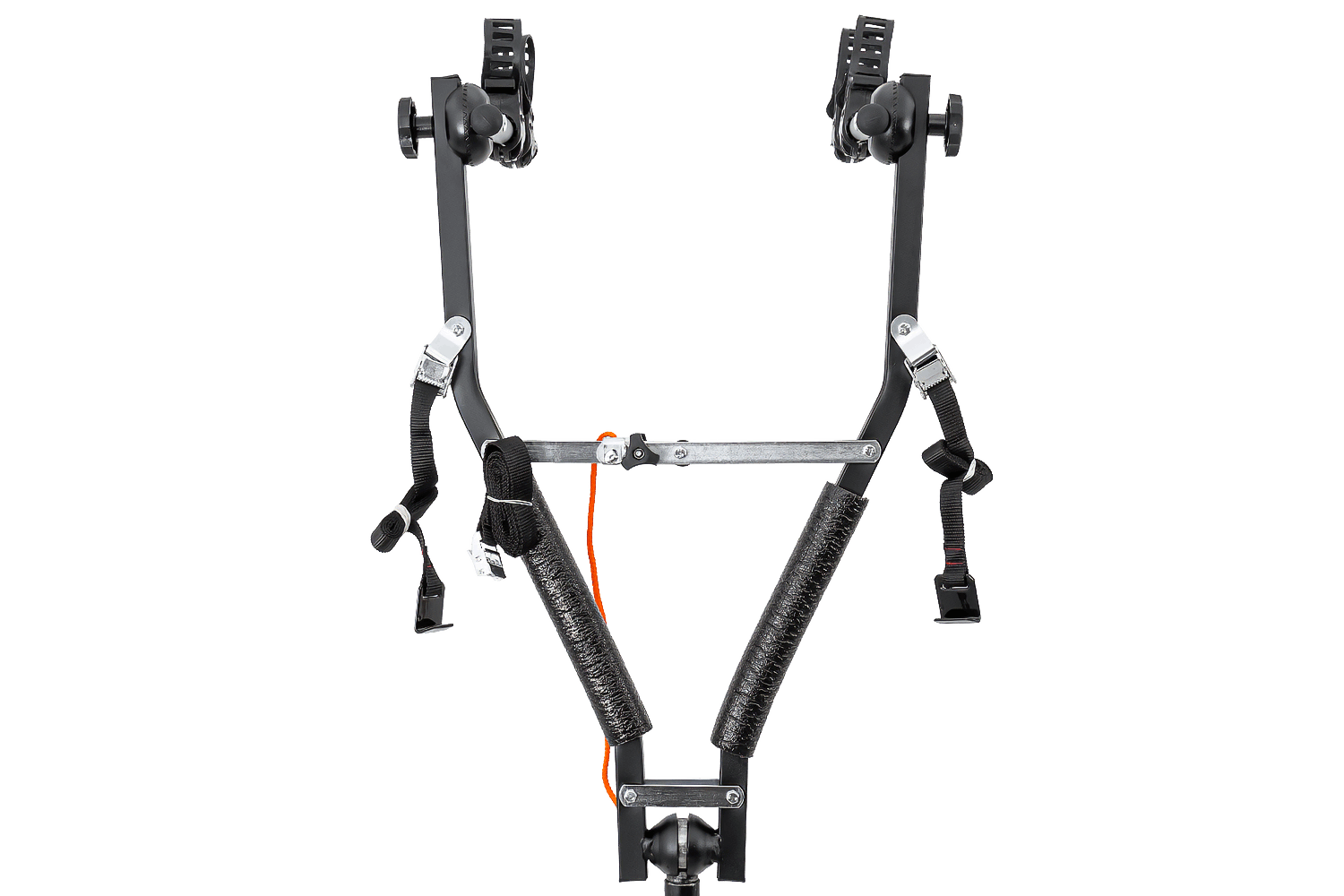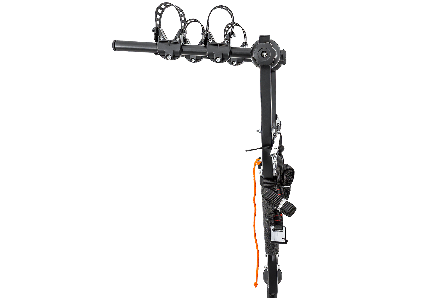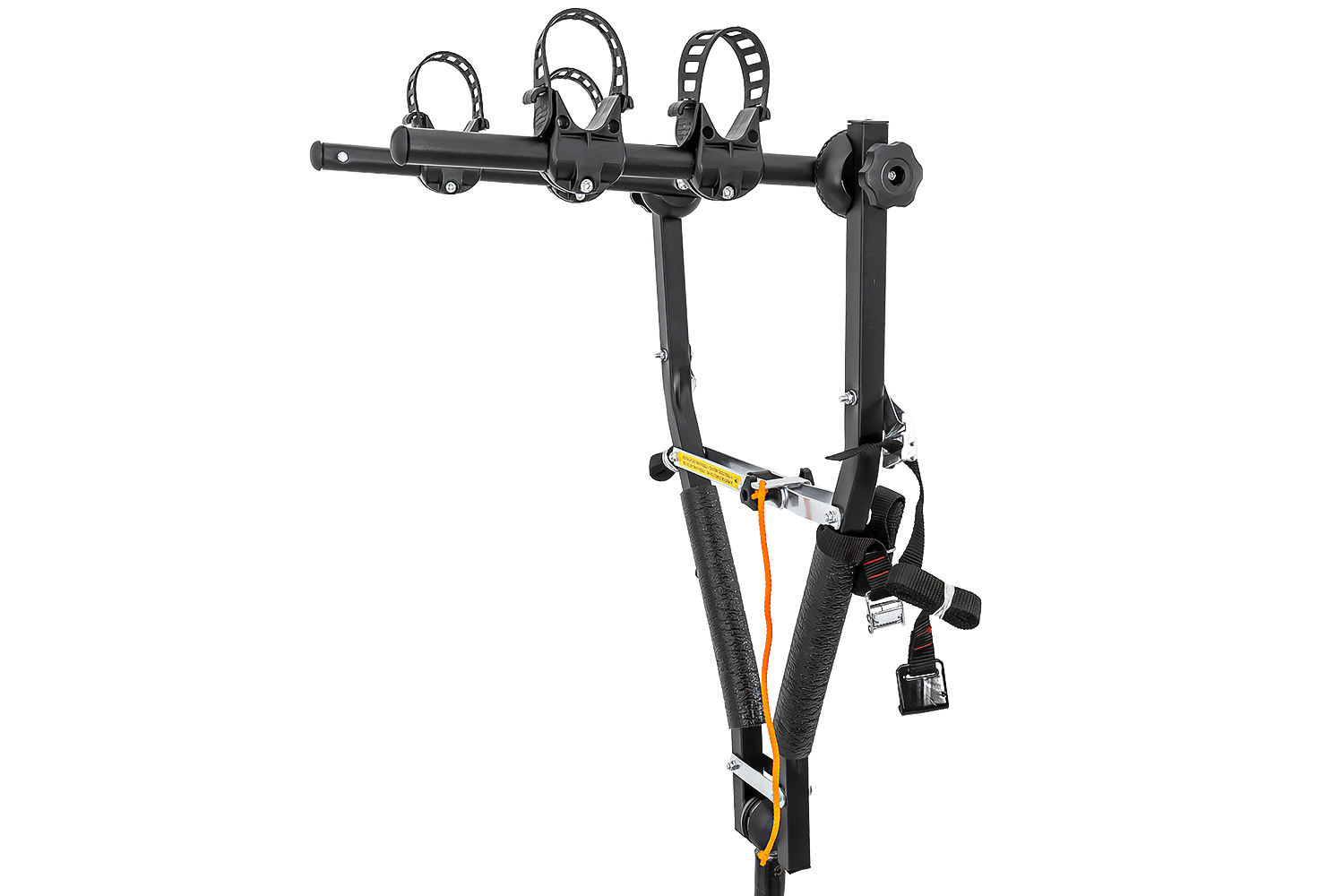 Ein großer Vorteil dieses Gepäckträgers ist sein durchdachtes Befestigungssystem. Jedes Fahrrad sitzt sicher in der dafür vorgesehenen Halterung , die mit einem robusten, verstellbaren Gummiband gesichert ist. So können Sie Fahrräder mit breiten und schmalen Rahmen effizient transportieren.