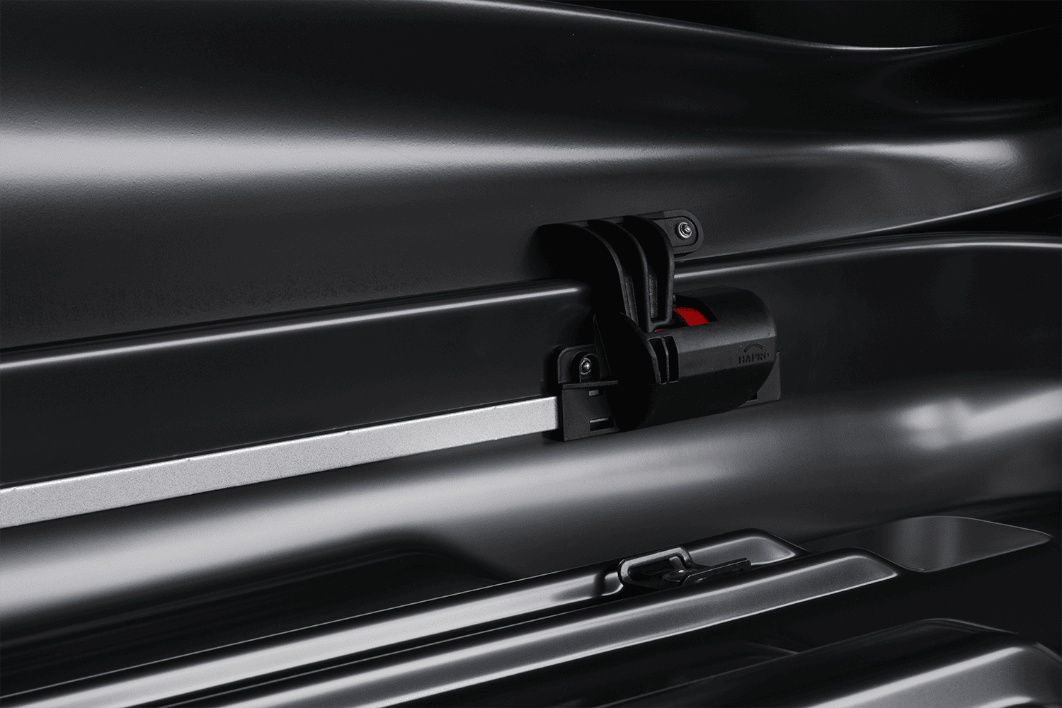 Montagesystem Premium-Passform ist ausgestattet mit Ein Dynamometer zeigt an, ob die Box korrekt auf den Dachbalken montiert ist. Ein charakteristisches Klickgeräusch ertönt, wenn der richtige Druck erreicht ist. In Kombination mit der einfachen und komfortablen Montage ist dies eines der besten Montagesysteme auf dem Markt. Geeignet für die Montage auf Balken:
