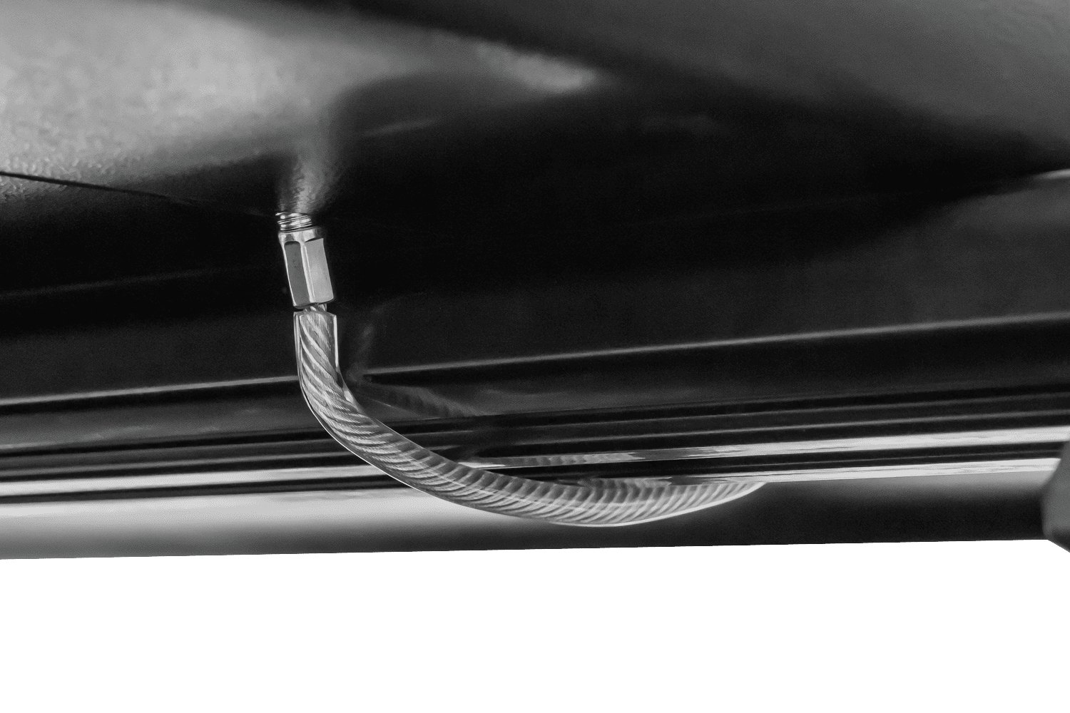 Das Montagesystem ermöglicht die Anpassung an den Abstand der Dachträgerquerträger, der zwischen 57 cm und 84 cm liegen sollte. Das Stahlkabel, das die Querträger überspannt, ist mit einem strapazierfähigen Material umflochten, das den Dachträger vor Kratzern schützt .