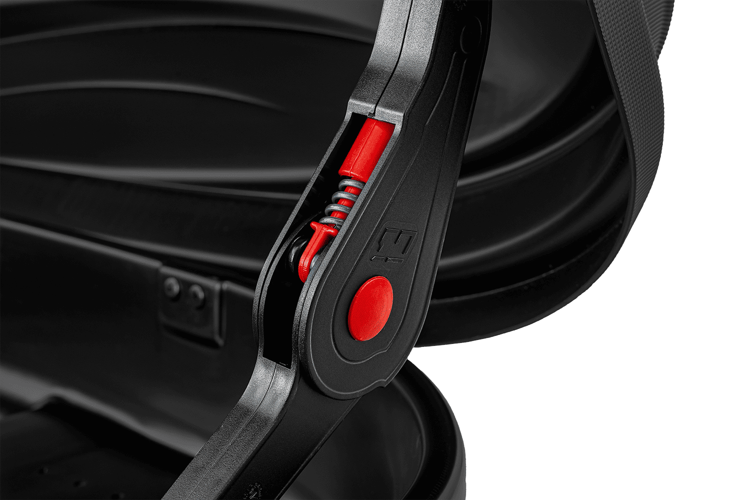 Die Box lässt sich von einer Seite öffnen und wird durch federbelastete Antriebe unterstützt, wodurch sich der Deckel leicht und stabil anheben lässt. Ein Zentralverriegelungssystem mit integriertem Knopf erhöht die Sicherheit Ihres Gepäcks. Die Dachbox besteht aus UV-beständigem Material, was die Haltbarkeit erhöht und dazu beiträgt, die Box viele Jahre lang in gutem Zustand zu halten.