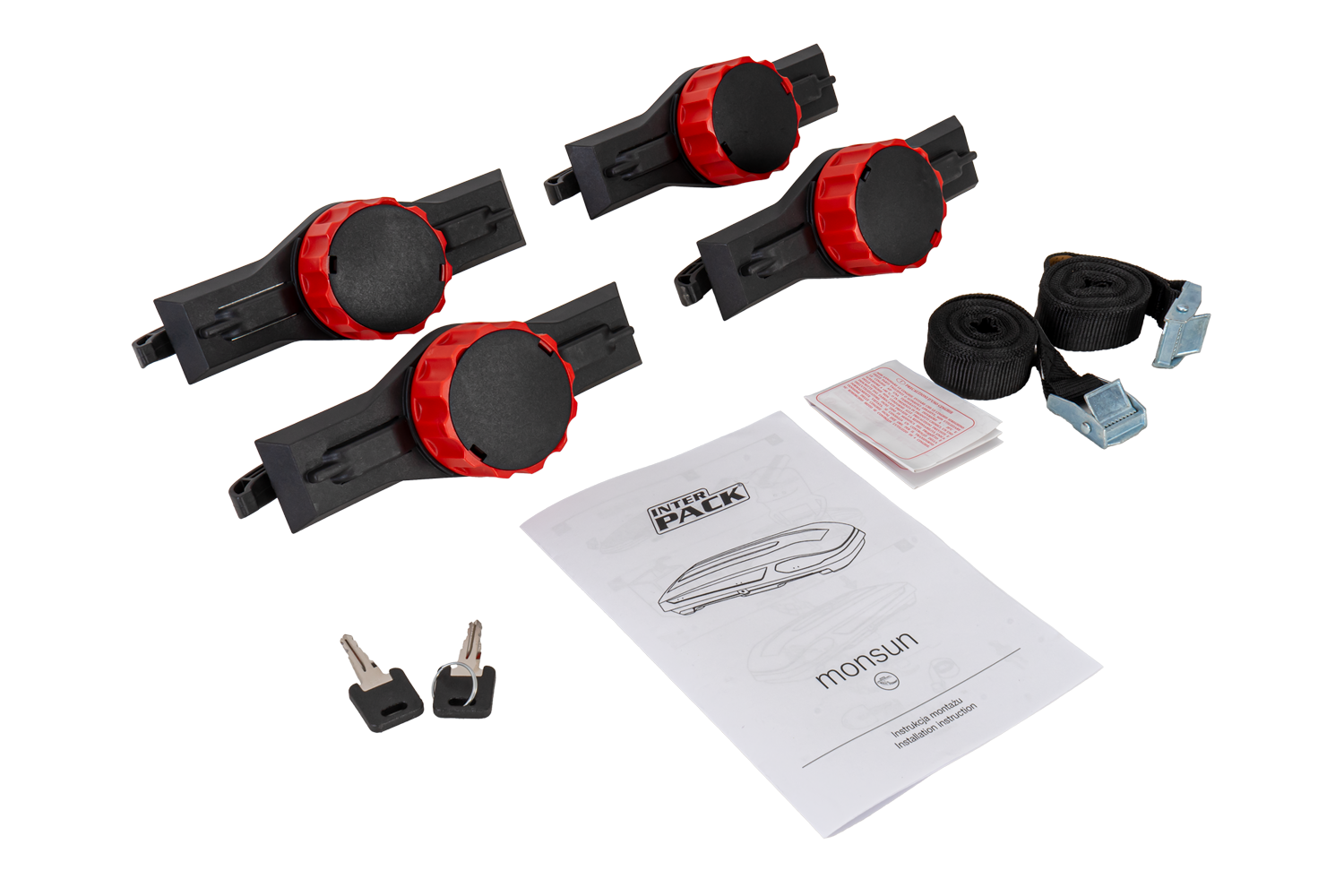 - Inter Pack Monsun M (Matt-Anthrazit) – 470 l Volumen, 186 cm Länge, 75 kg Tragkraft, 16 kg Gewicht. Bietet Platz für Koffer, Taschen sowie Ski und Snowboards bis 165 cm. Rapid Fit mit Dynamometer, Zwei-Wege-Öffnung und Zentralverriegelung sorgen für Siche