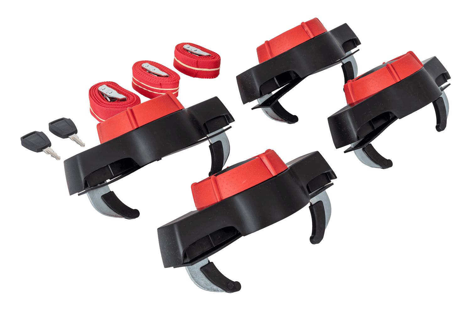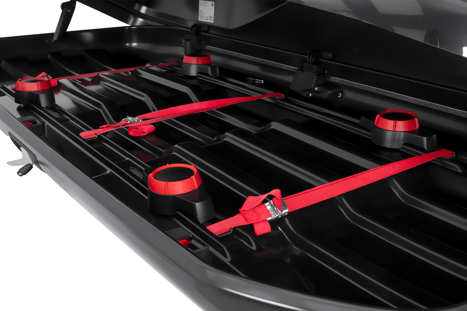 Im Set sind außerdem Textilbänder enthalten. zur Sicherung des Gepäcks (die Casar-Box verfügt über spezielle Stellen zum Anbringen von Gurten).