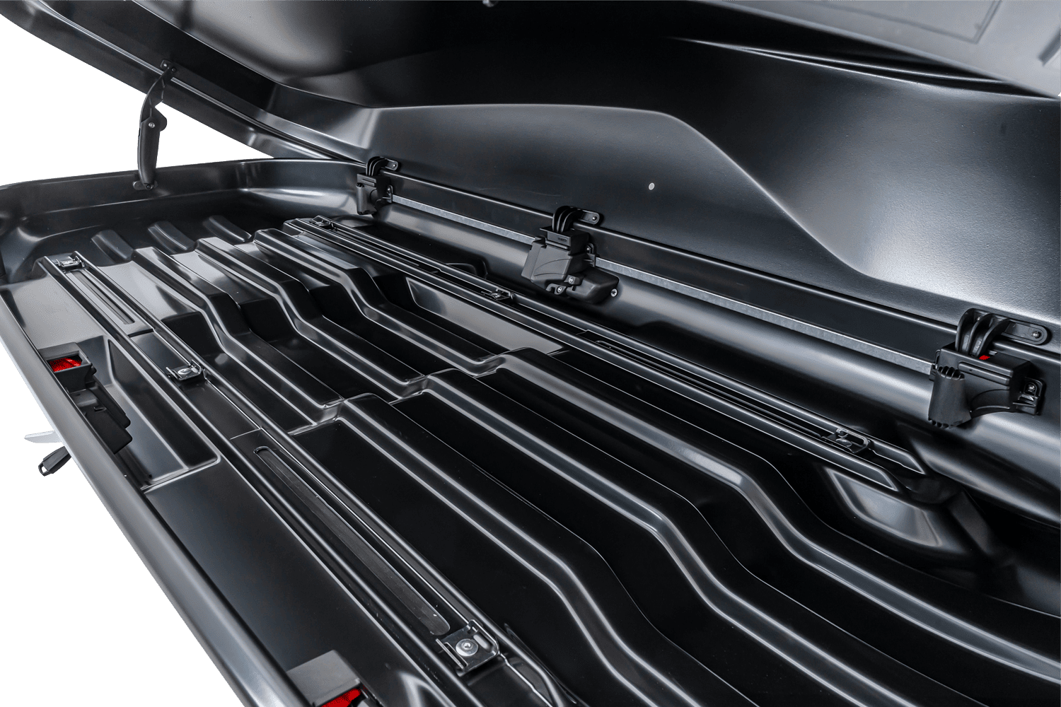 Mit einer Außenlänge von 215 cm bietet die Box problemlos Platz für Skier oder Snowboards bis zu 210 cm Länge sowie für Koffer, Kinderwagen und Campingausrüstung. Das Fassungsvermögen von 530 Litern ermöglicht den Transport einer beträchtlichen Menge an Gepäck bei einfachem Zugriff. Eine Tragfähigkeit von 75 kg bei einem Eigengewicht von 21,5 kg sorgt für ein optimales Gleichgewicht zwischen Haltbarkeit und Leistung.