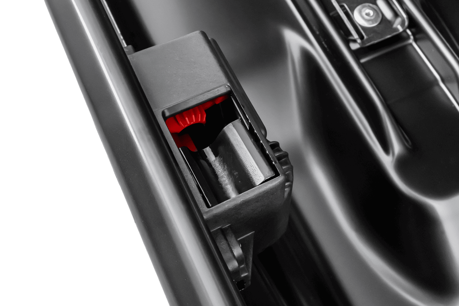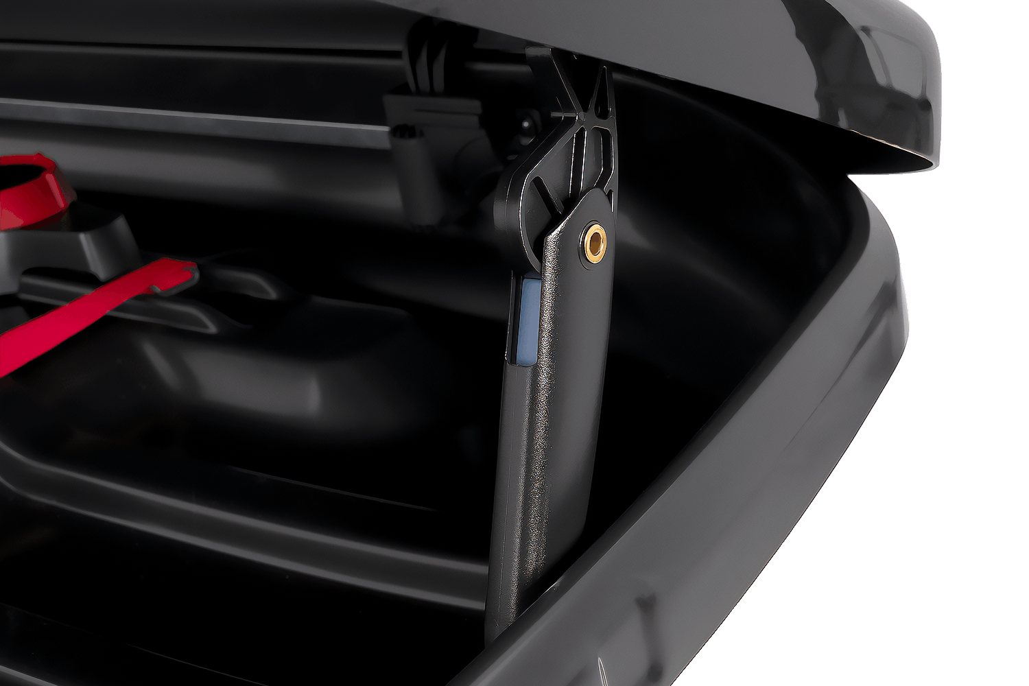 Montagesystem Premium-Passform ist ausgestattet mit Ein Dynamometer zeigt an, ob die Box korrekt auf den Dachbalken montiert ist. Ein charakteristisches Klickgeräusch ertönt, wenn der richtige Druck erreicht ist. In Kombination mit der einfachen und komfortablen Montage ist dies eines der besten Montagesysteme auf dem Markt. Geeignet für die Montage auf Balken: