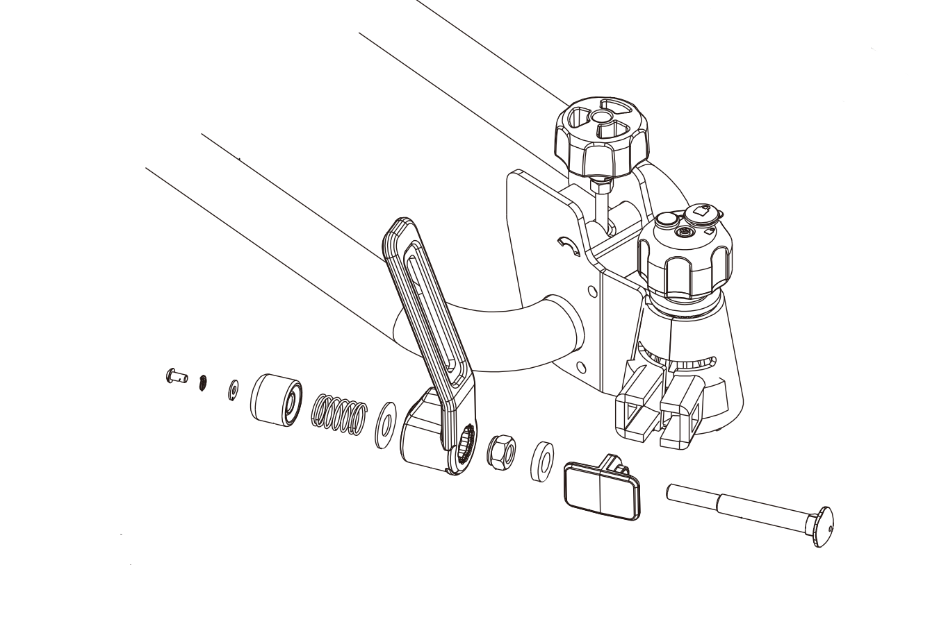 Integrierte Klemmschraube für Inter Pack Fahrradplattformen der New Spider-Serie – diese Schraube muss festgezogen werden, damit der Klemmmechanismus (sog. Glocke) richtig an der Anhängerkupplungskugel befestigt wird. Das Set enthält einen vollständigen Satz der für den Austausch oder die Reparatur benötigten Teile.