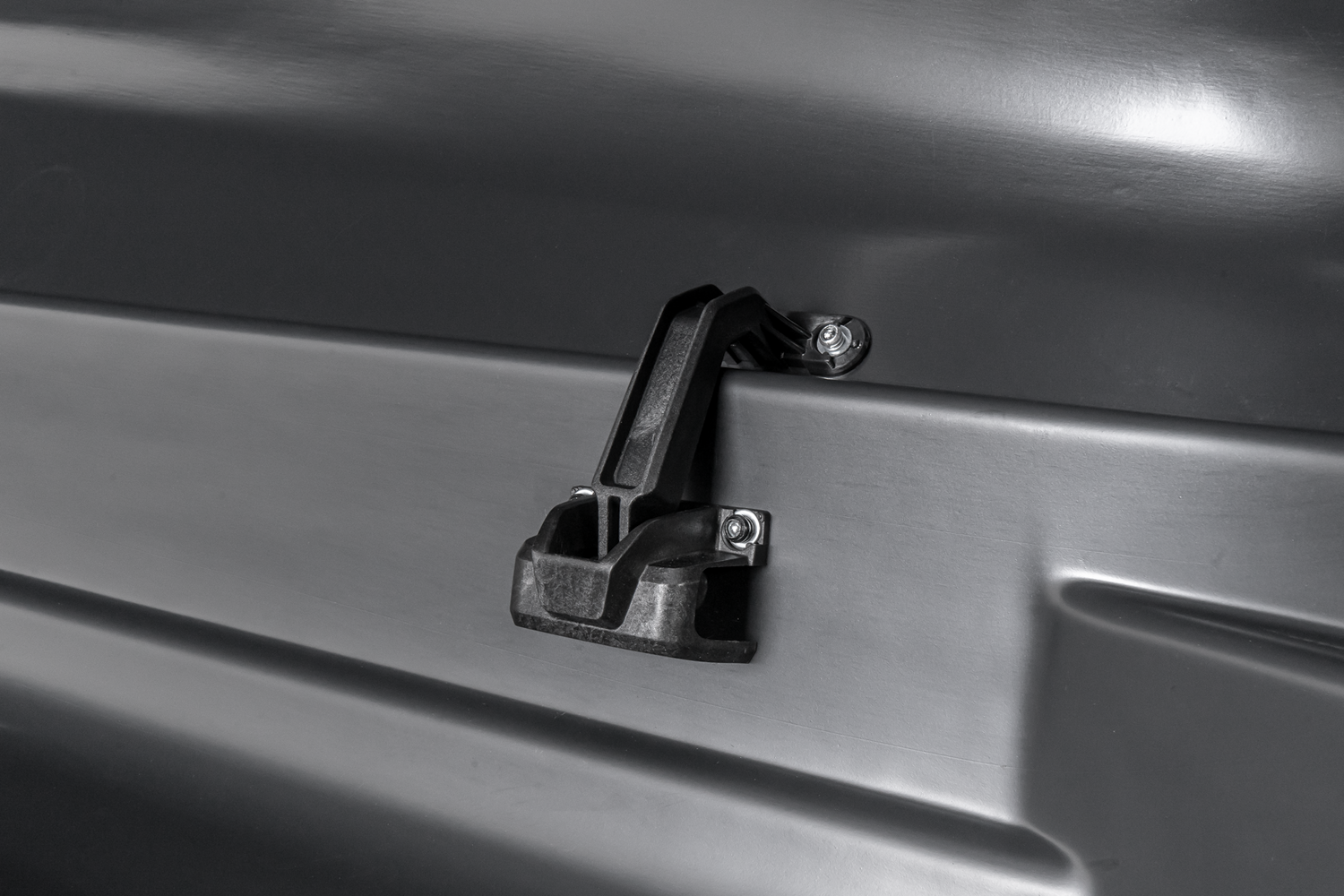 Das Montagesystem ermöglicht die Anpassung an den Abstand der Dachträgerstangen, der im Bereich von liegen sollte 46 cm runter 123 cm.