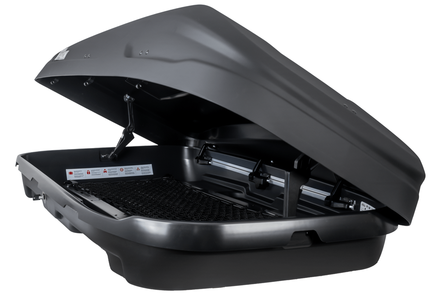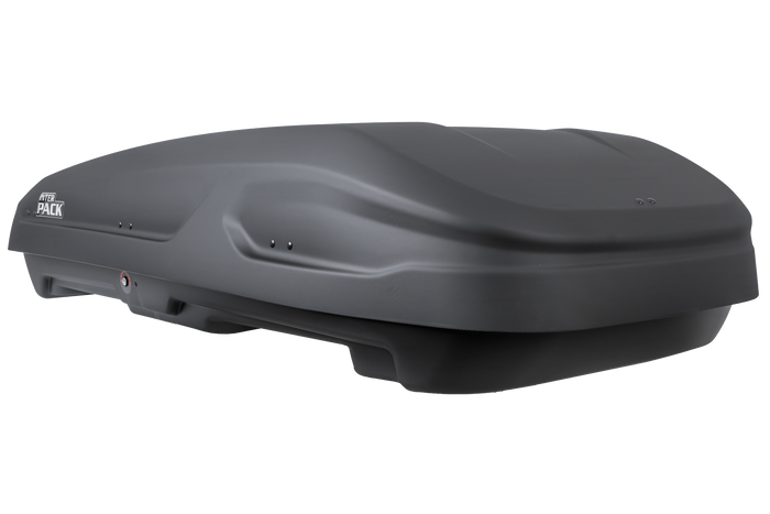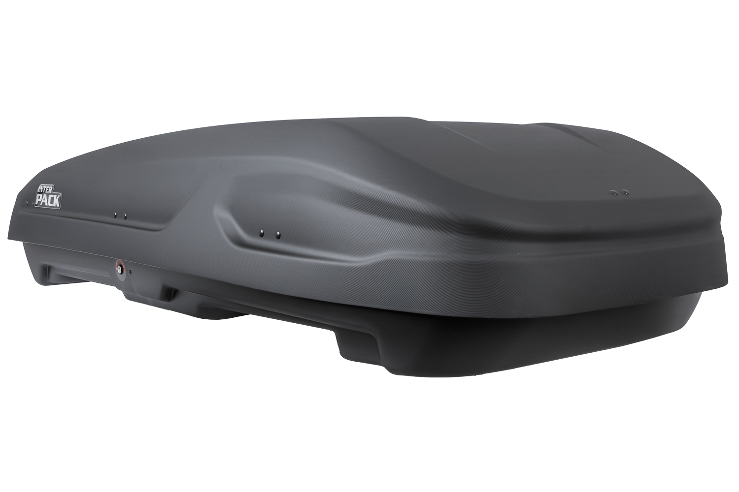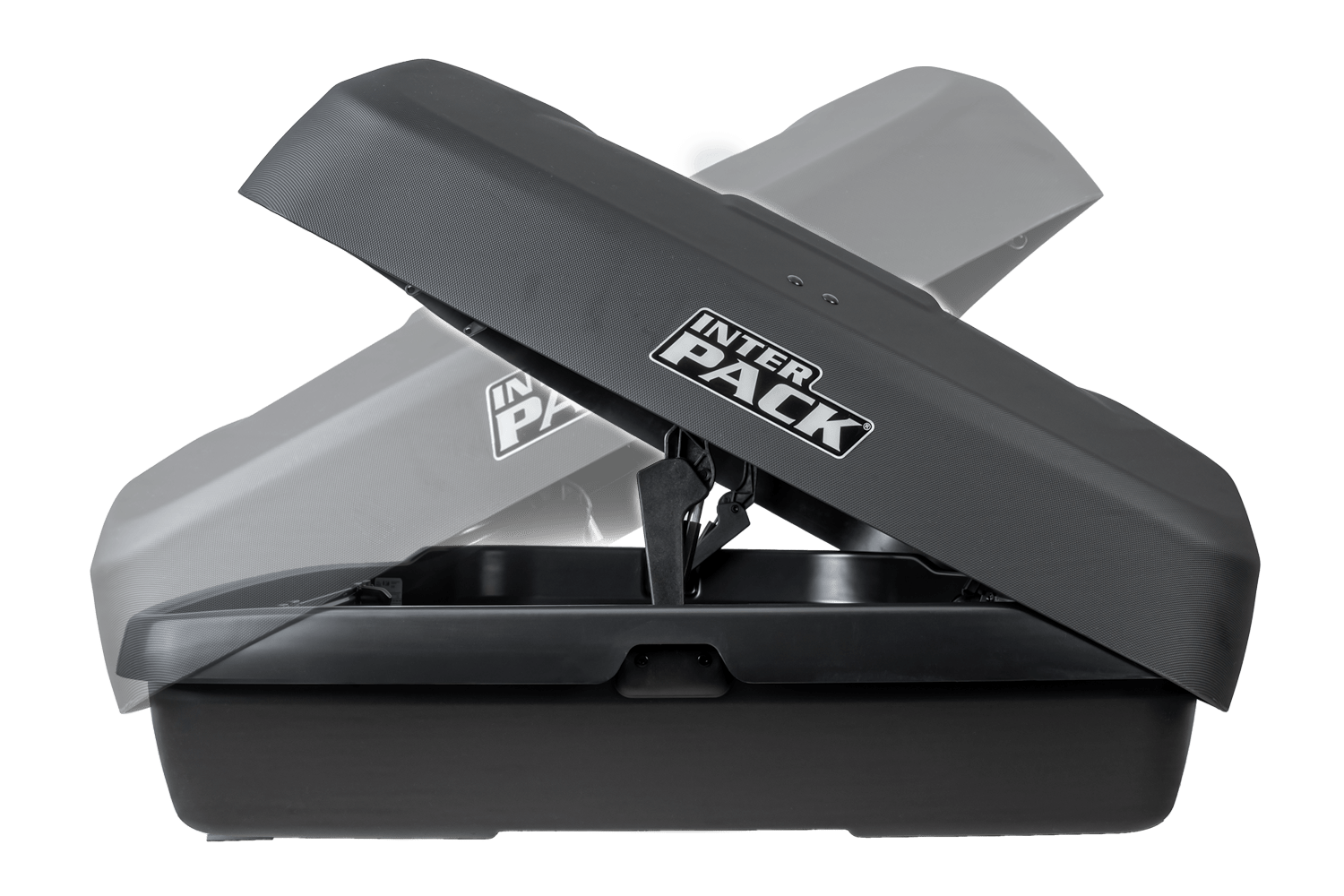 - Die mattschwarze Dachbox Inter Pack Monsun S hat ein Fassungsvermögen von 400 Litern, eine Tragkraft von 75 kg und ist 165 cm lang. Sie bietet Platz für Koffer, Taschen, Skier und Snowboards bis zu einer Länge von 150 cm. Die beidseitige Öffnung, Rapid Fi