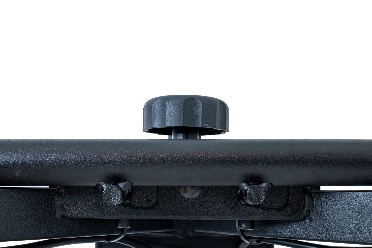 Die Plattform wird mit einer Schraube am Haken befestigt. Dies ist eines der sichersten und zuverlässigsten Befestigungssysteme. Die Schraube, die den Mechanismus am Haken verriegelt, ist mit einem Schlüssel zum Festziehen ausgestattet.