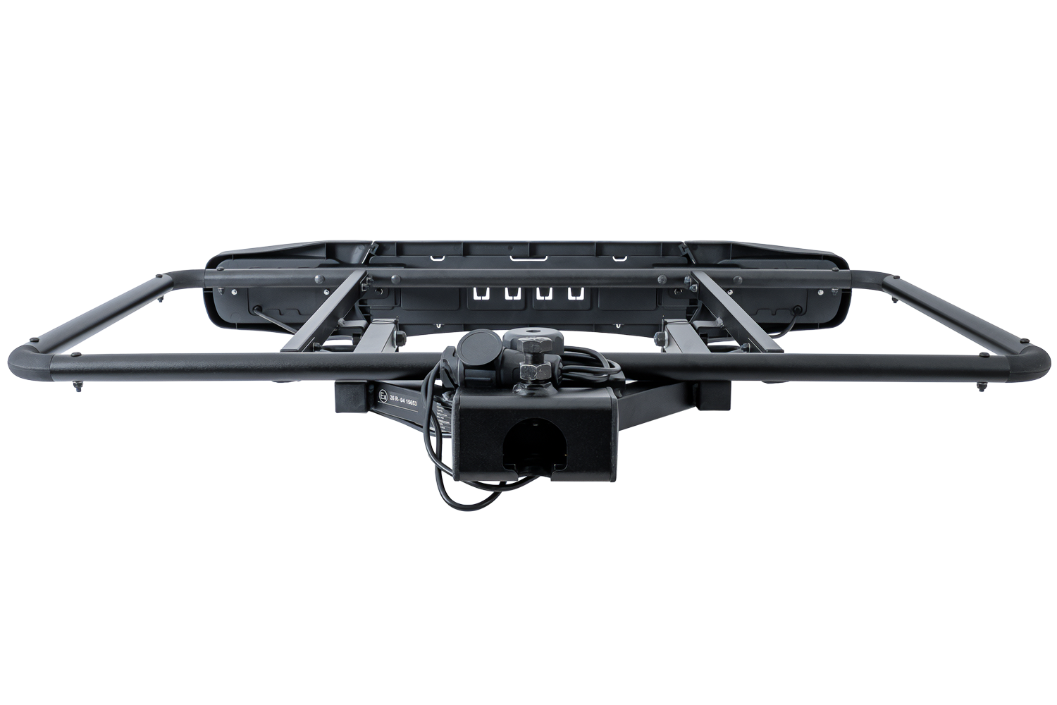 Eine universelle Plattform, mit der Sie Gepäckboxen oder Güter unterschiedlicher Größe am Haken transportieren können. Sie eignet sich perfekt für den Transport verschiedener Gepäckarten, sowohl auf Sommer- als auch auf Winterreisen.