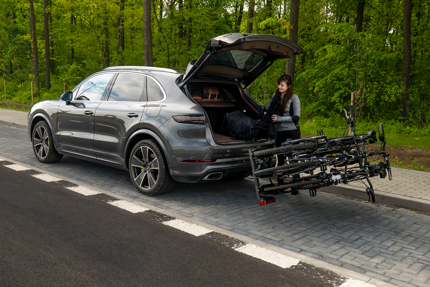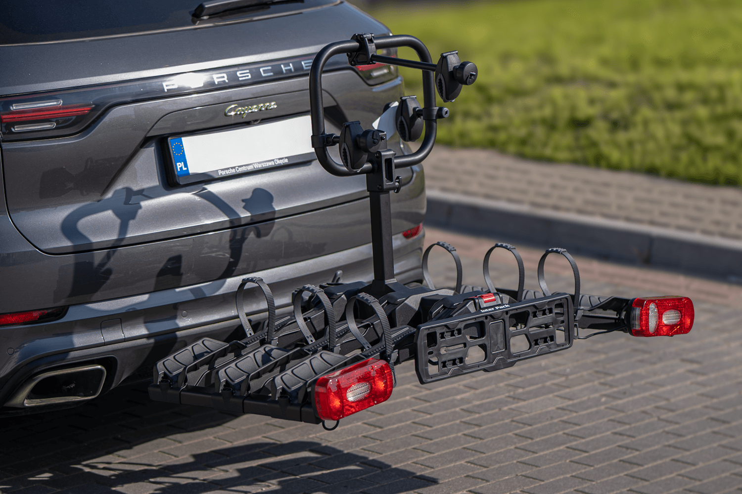 Die gesamte Struktur besteht aus strapazierfähigen Materialien, was den Transport von Fahrrädern mit einem Gesamtgewicht von bis zu 60 kg ermöglicht. Zusätzlich verfügt der Spider 3 Lite über eine Kippfunktion , dank der der Benutzer auch mit montierten Fahrrädern vollen Zugang zum Kofferraum des Fahrzeugs hat. Das moderne, dynamische Aussehen der Plattform passt perfekt zum Stil moderner Autos und unterstreicht ihre hohe Qualität und sorgfältige Verarbeitung. Für umfassende Sicherheit wurde die Plattform mit einer 13-poligen Lichtplatine ausgestattet, die alle erforderlichen Lichter enthält: Positions-, Brems-, Blinker-, Nebel-, Rückfahr- und Kennzeichenbeleuchtung. Es erfüllt den europäischen Sicherheitsstandard XP R18-904-4.