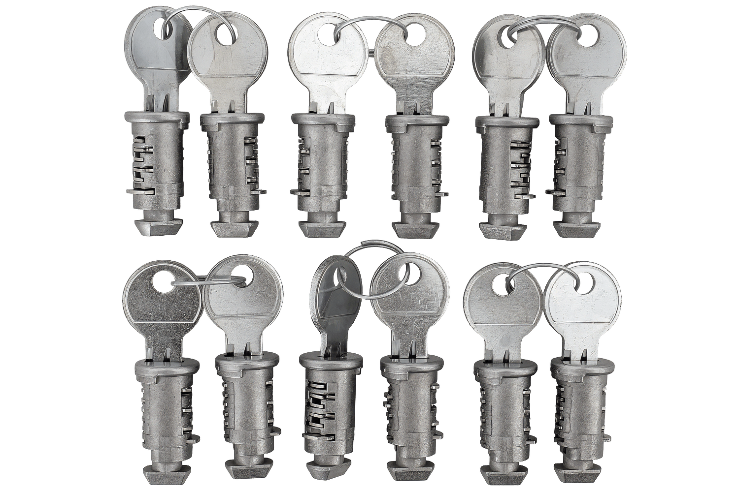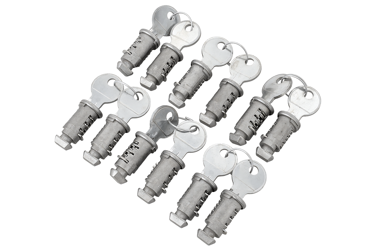 Universelle Schlösser für Fahrradträger, Dachträger, Sportträger oder Sicherheitsknöpfe. Die Schlosseinsätze im Set haben die gleiche Einsatz- und Schlüsselnummer.