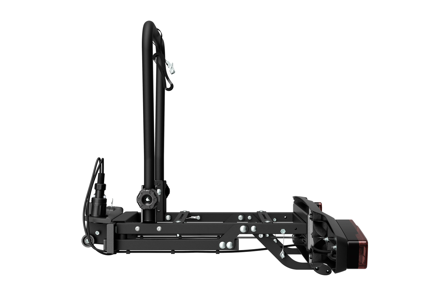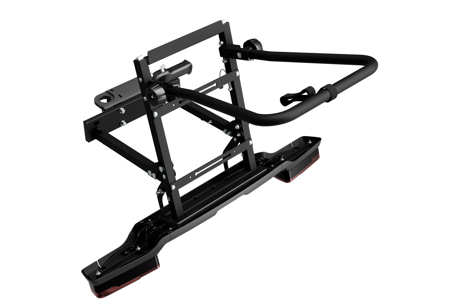 Die aus langlebigen Materialien gefertigte Tragstruktur trägt eine Tragkraft von bis zu 60 kg und ermöglicht so den problemlosen Transport von normalem Gepäck oder auch schweren E-Bikes. Die Basis wird an der Anhängerkupplung des Fahrzeugs montiert und ist mit einem zertifizierten Beleuchtungssystem und einem Nummernschild ausgestattet, das den europäischen Straßenverkehrsnormen entspricht. Dies gewährleistet volle Sichtbarkeit und Sicherheit während der Fahrt .