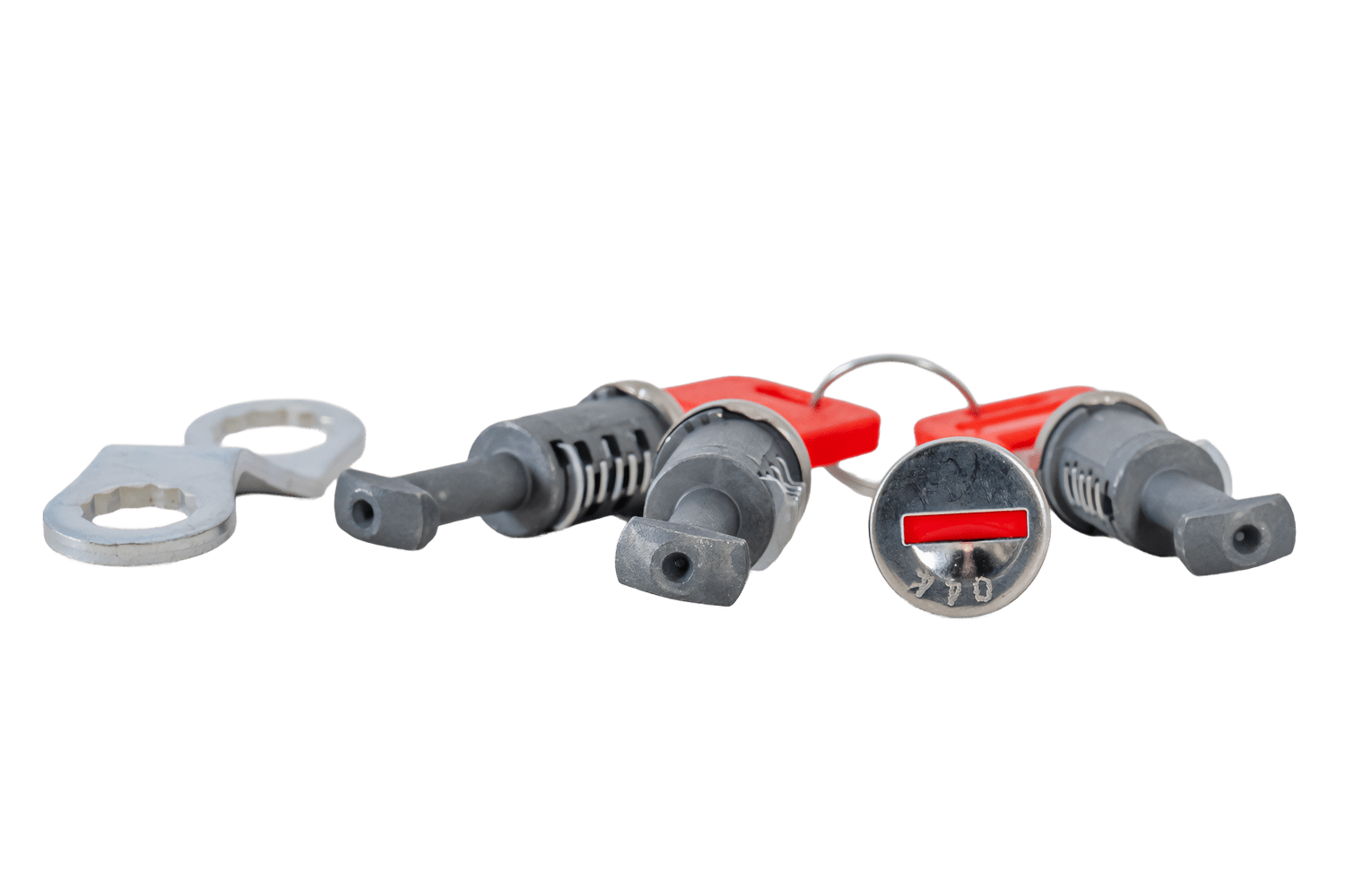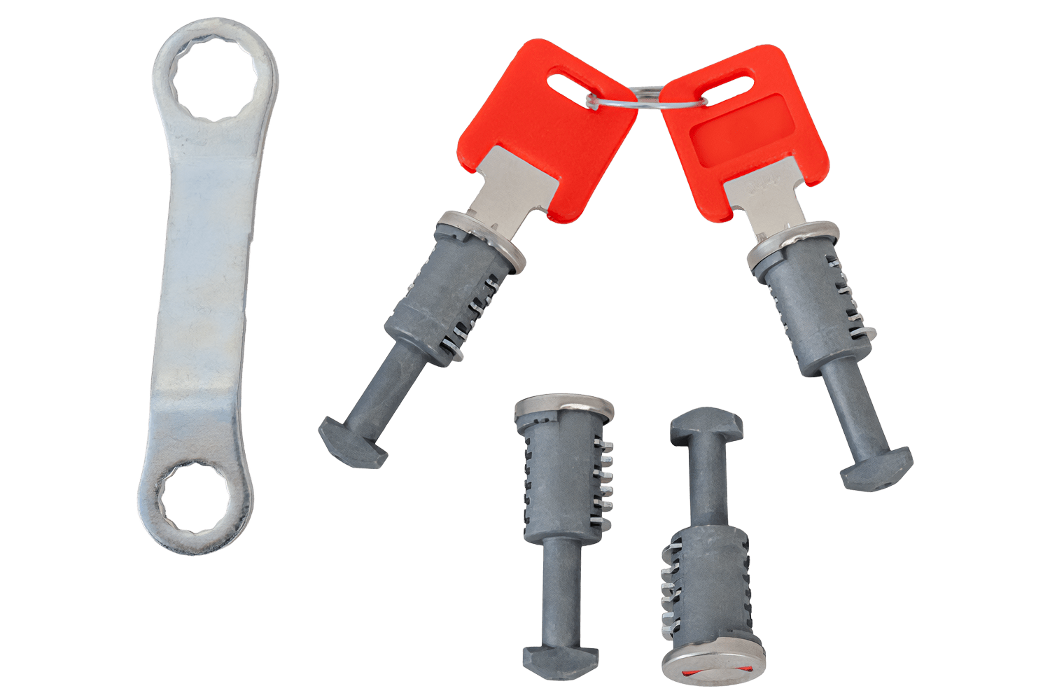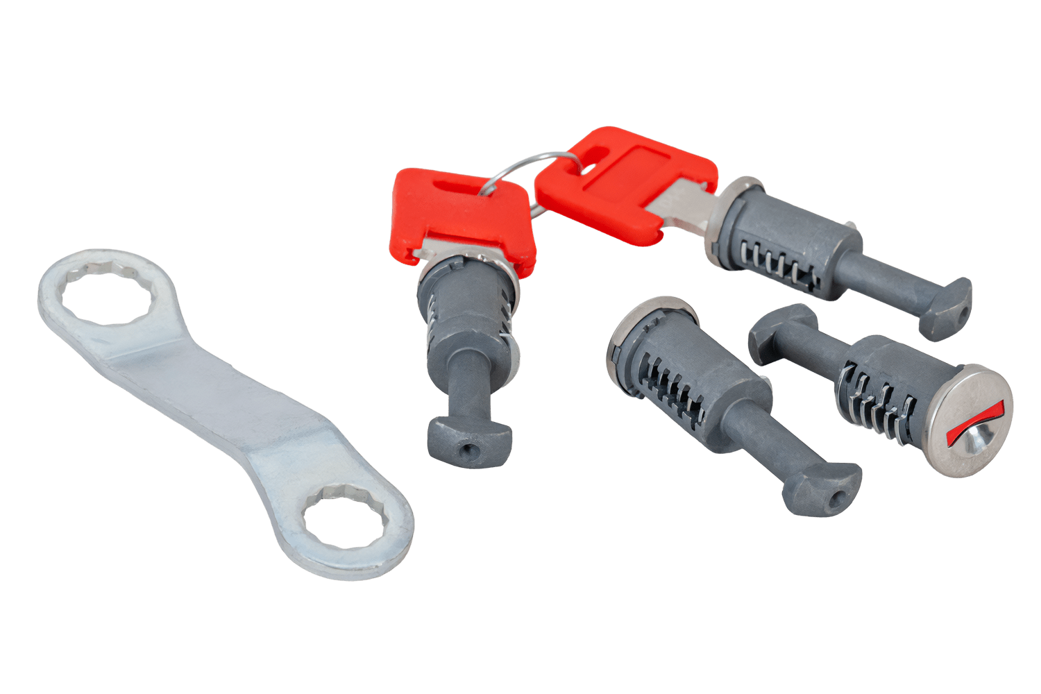 - Dieses Set enthält vier Schlösser und zwei passende Schlüssel. Passt nur zu Pacific G3-Racks. Set-Code: 69.015