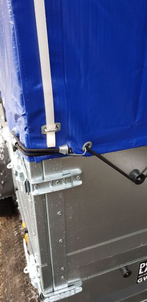- Spanngummi-Haken zum Abschließen und Sichern einer elastischen Planenschnur mit 6 mm Durchmesser. Sie ermöglicht ein schnelles und sicheres Spannen und Abnehmen der Plane und stabilisiert sie während des Transports oder der Lagerung.