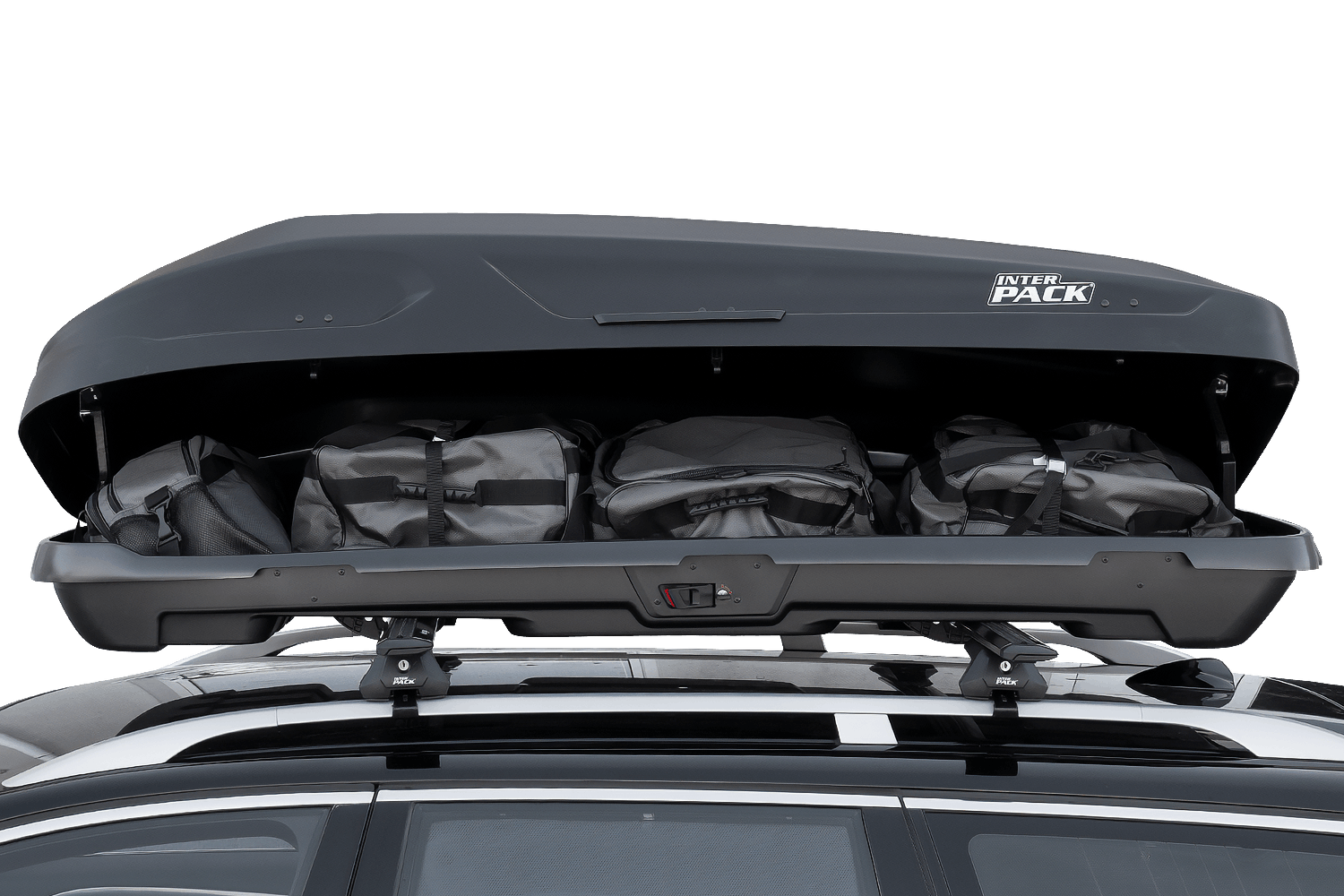 • Inter Pack Monsun PRO L fasst 550 Liter. Seine robuste und dennoch leichte Konstruktion bietet eine maximale Tragkraft von 75 kg. Die Smart Lock- und Rapid Fit-Systeme garantieren Sicherheit und einfache Montage. Zurrgurte sind im Lieferumfang enthalten