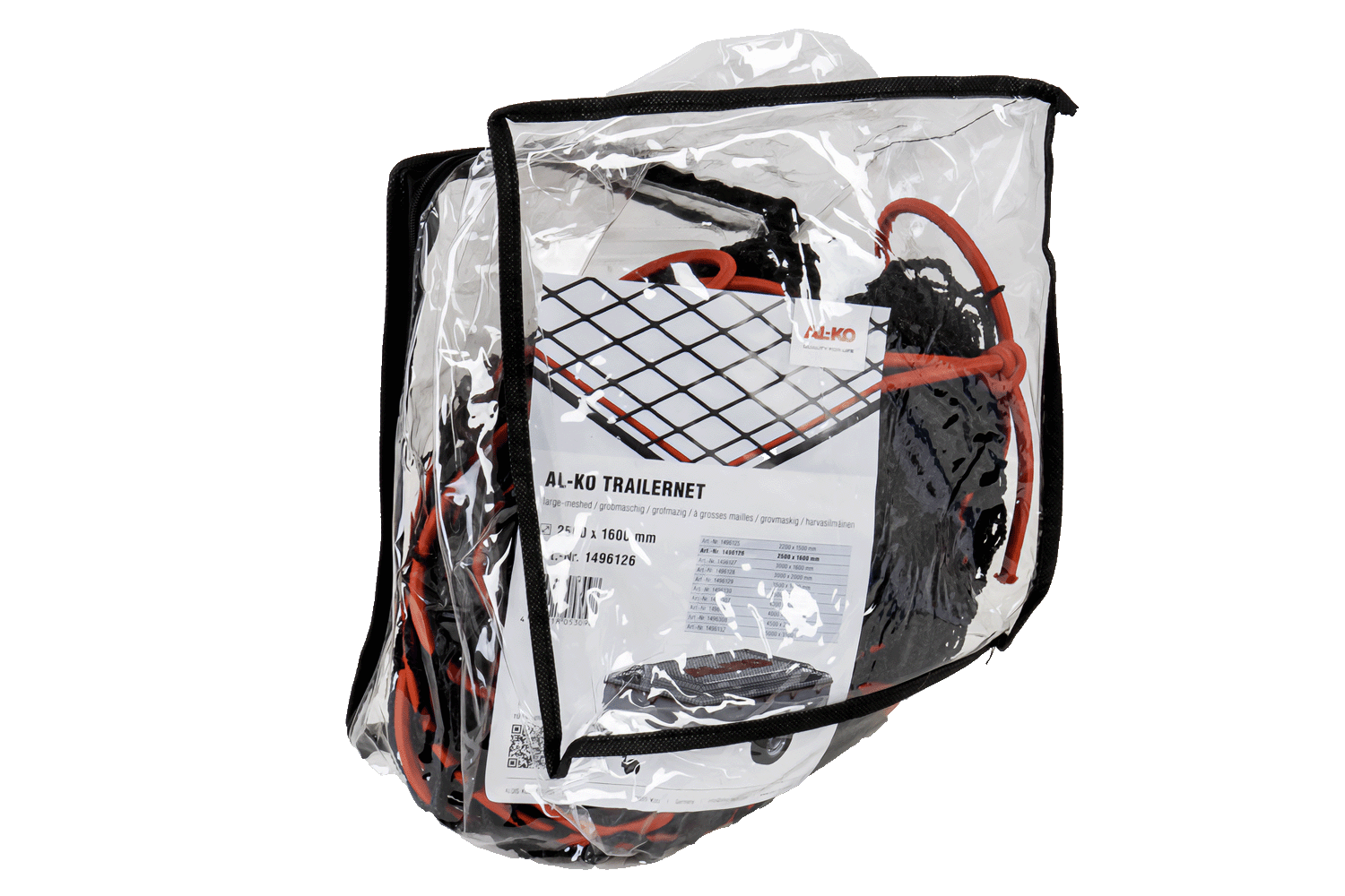 • Das AL-KO 1496126 Ladungsnetz mit den Maßen 1600 x 2500 mm, 30 x 30 mm Maschenweite und elastischer Kordel sichert Ladung auf Anhängern. Es ist witterungsbeständig und TÜV SÜD-zertifiziert und garantiert Qualität und Transportsicherheit.