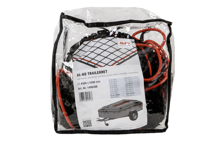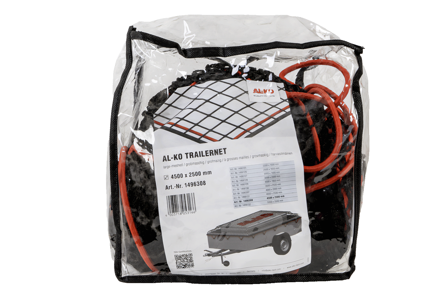 • Das AL-KO 1496308 Ladungssicherungsnetz mit den Maßen 2500 x 4500 mm, 30 x 30 mm Maschenweite und elastischer Kordel sichert Ladung auf Anhängern. Es ist witterungsbeständig und TÜV SÜD-zertifiziert und garantiert Qualität und Transportsicherheit.