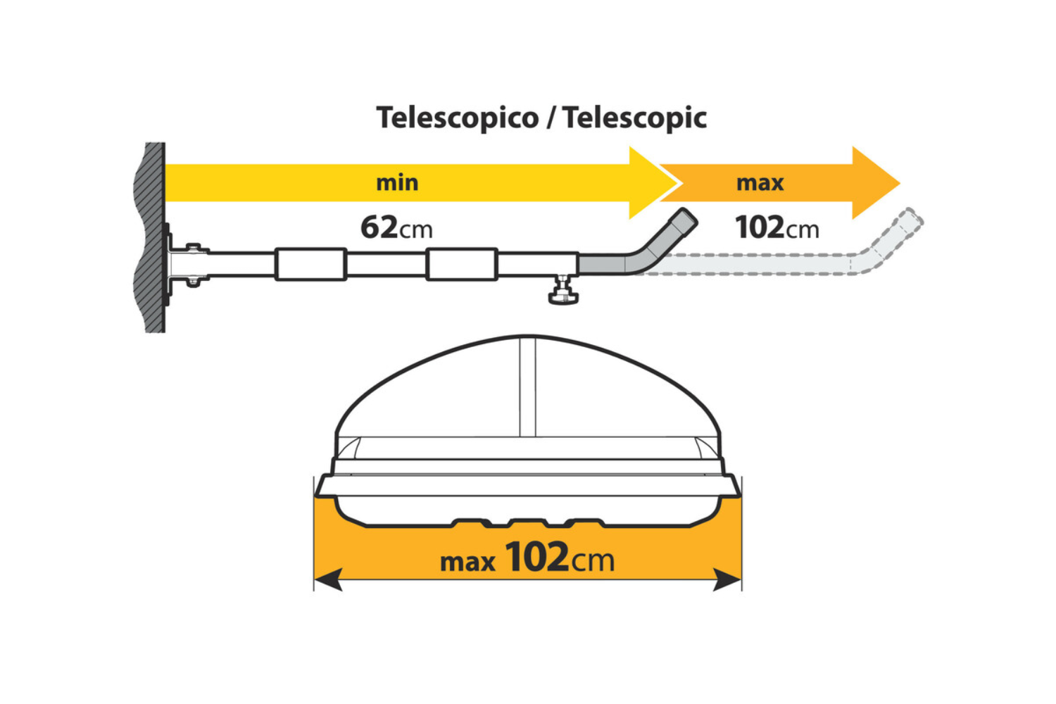 Wandhalterungen für Dachboxen TYP 2 sind praktische Ständer zum flachen Verstauen der Box. Die Teleskopverstellung von 62–102 cm ermöglicht eine schnelle Anpassung an verschiedene Boxgrößen und -formen und kann ohne Werkzeug vorgenommen werden. Die Rohrkonstruktion mit 30/25 mm Durchmesser ist stark und stabil, und die maximale Tragkraft von 40 kg ermöglicht die sichere Lagerung der meisten Modelle. Im zusammengeklappten Zustand haften die Halterungen an der Wand und sparen so Platz in der Garage.