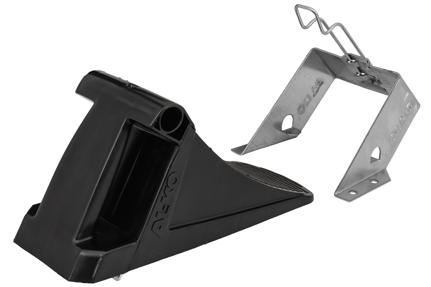 - Der Unterlegkeil UK 36 mit AL-KO-Montagehalterung hat eine Tragkraft von 1600 kg. Er ist für leichte Nutzfahrzeuge und Transporter konzipiert und blockiert die Räder, verhindert so das Wegrollen des Fahrzeugs und erhöht die Sicherheit beim Parken.