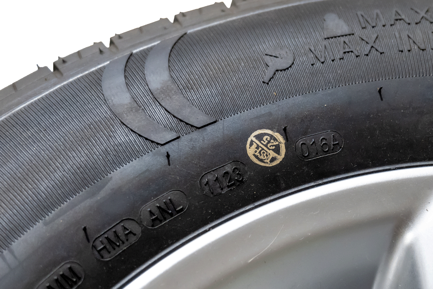 Outlet-Produkt – Reifen hergestellt im Jahr 2023. Die Felge weist Beschädigungen unterschiedlichen Ausmaßes und an verschiedenen Stellen auf, wie z. B. Verfärbungen, Kratzer oder Dellen.