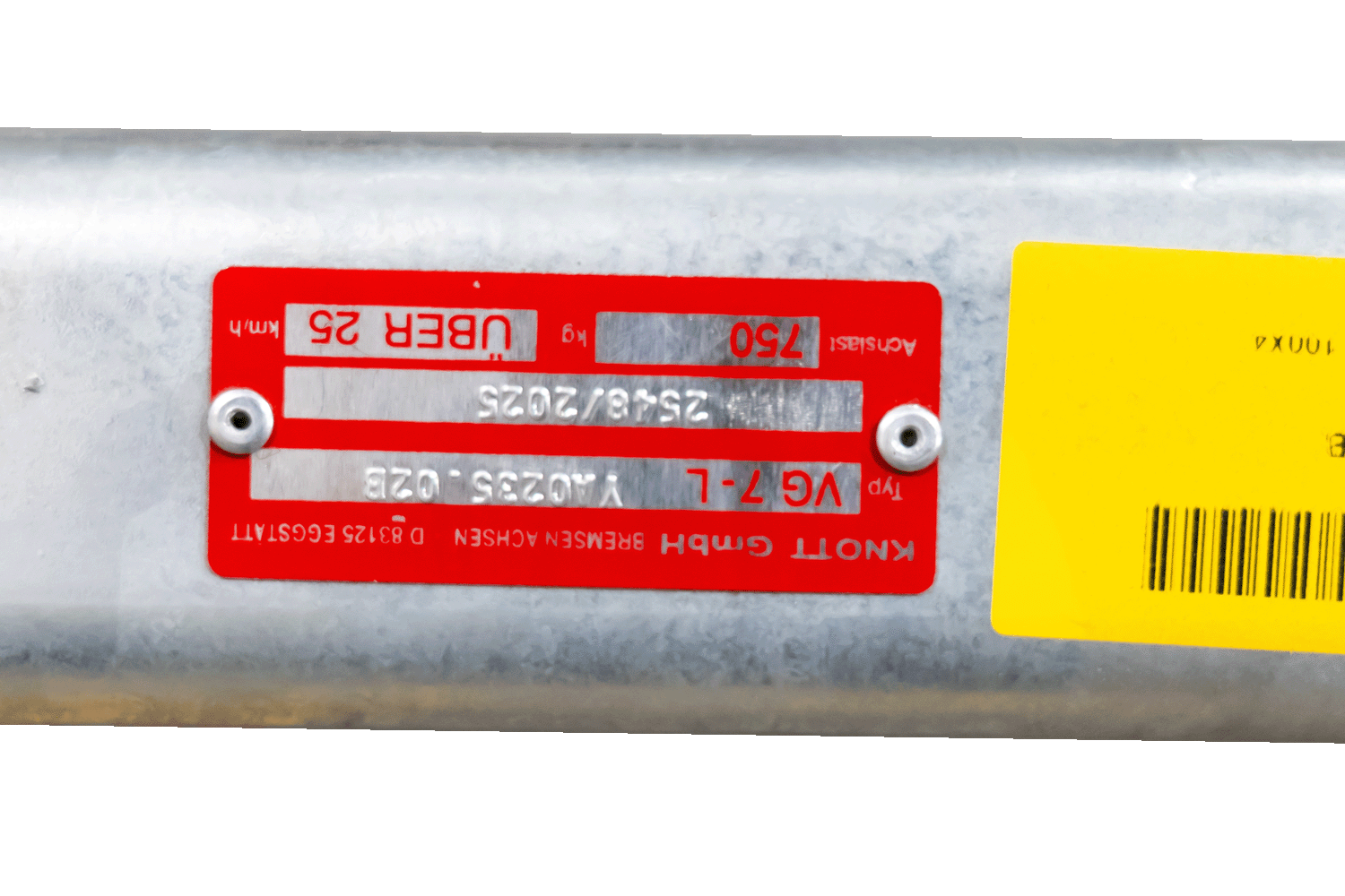 OUTLET KNOTT VG7-L ungebremste Achse für UNITRAILER Anhänger 750kg 1260mm 1560mm 4x100