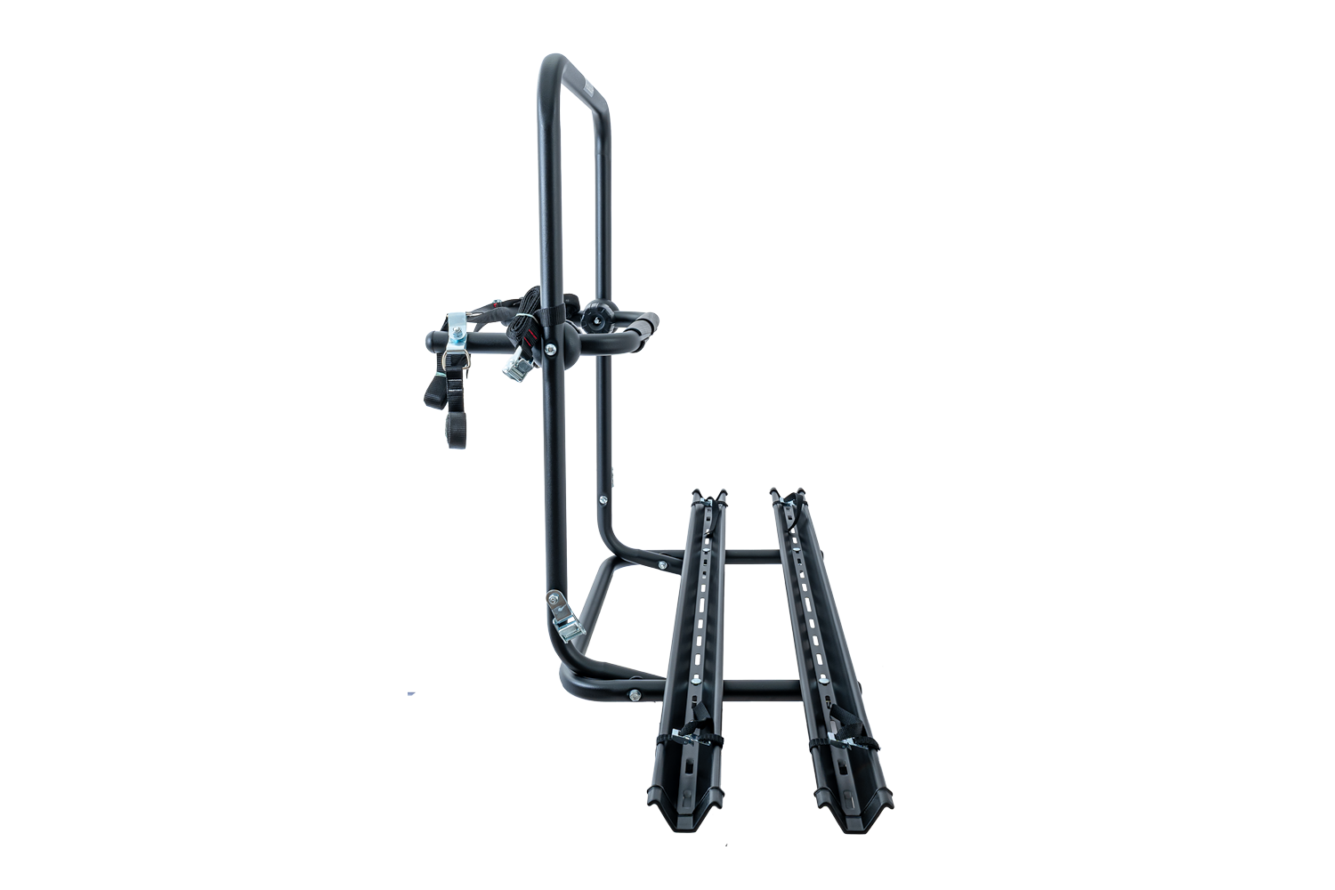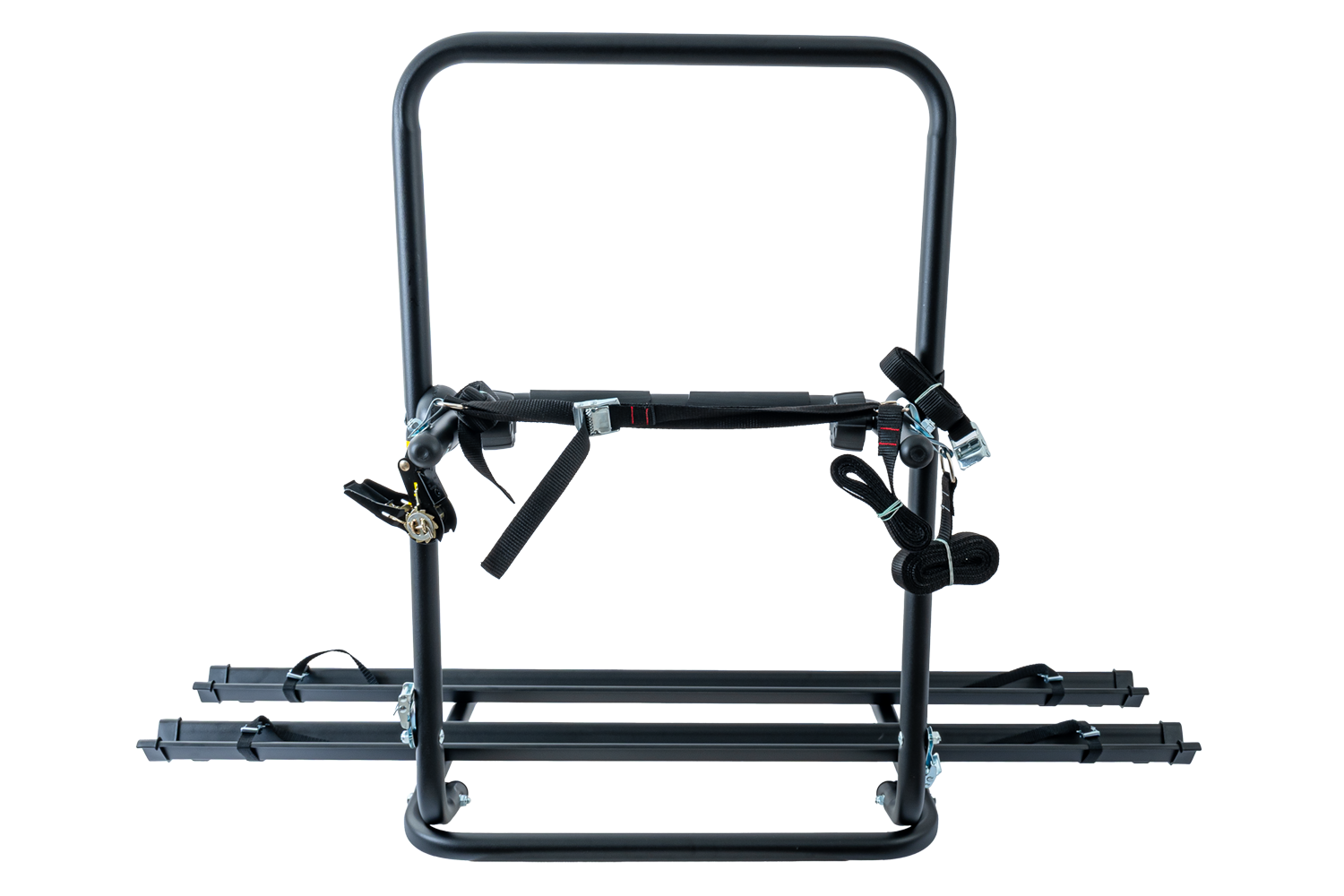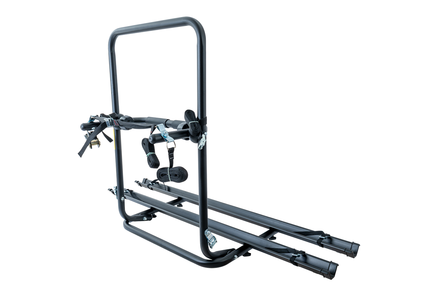 Jedes Fahrrad wird einzeln mit Gurten und Rahmenhalterungen gesichert, sodass es auch auf unebenem Untergrund nicht verrutscht. Verstellbare Radschienen ermöglichen die Anpassung des Trägers an verschiedene Radstände und erhöhen so die Kompatibilität mit verschiedenen Fahrradmodellen. Zusammengeklappt nimmt der Träger nur wenig Platz ein und lässt sich problemlos in der Garage oder im Kofferraum verstauen.