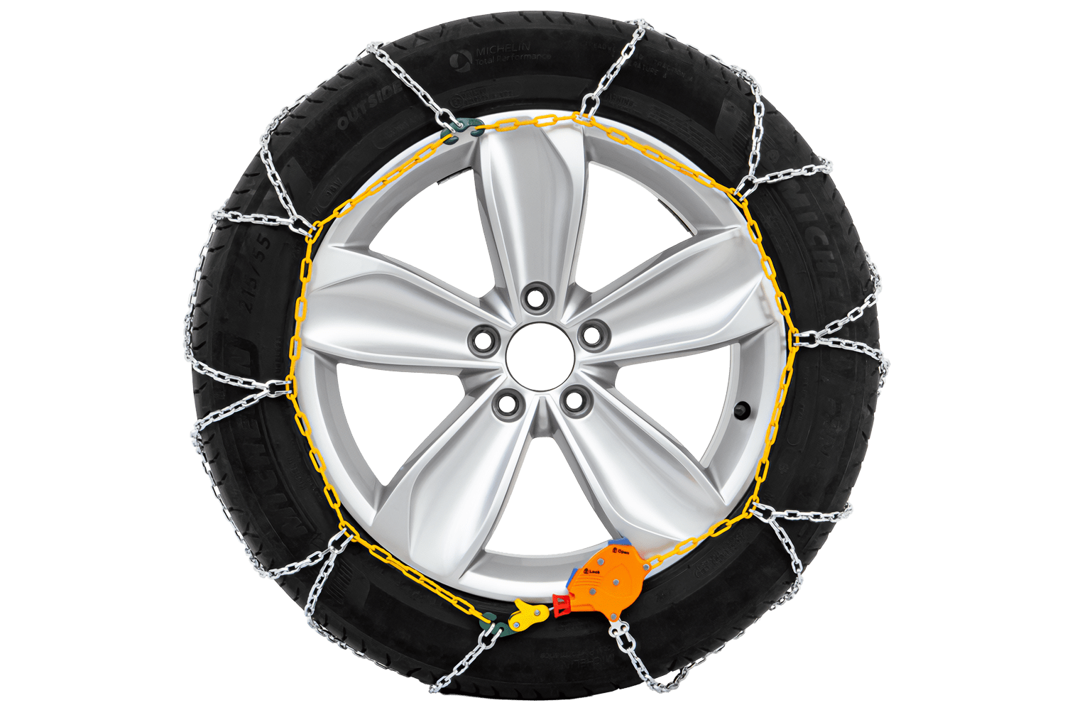 - Moderne Inter Pack KNS-Schneeketten mit automatischer Spannvorrichtung ermöglichen eine einfache Montage, selbst unter schwierigen Bedingungen. Ihr Rautenmuster und der 9 mm starke, gehärtete Stahl gewährleisten hervorragende Traktion und sicheres Fahren