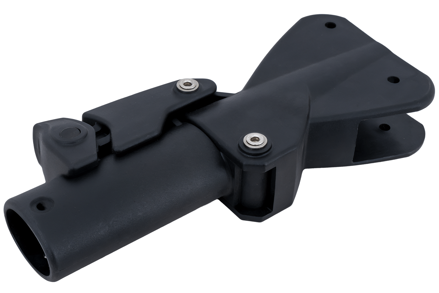 Ein Scharnier für den Überrollbügel der Strada EVO Plattform, das es ermöglicht, die Plattform teilweise zusammenzuklappen.