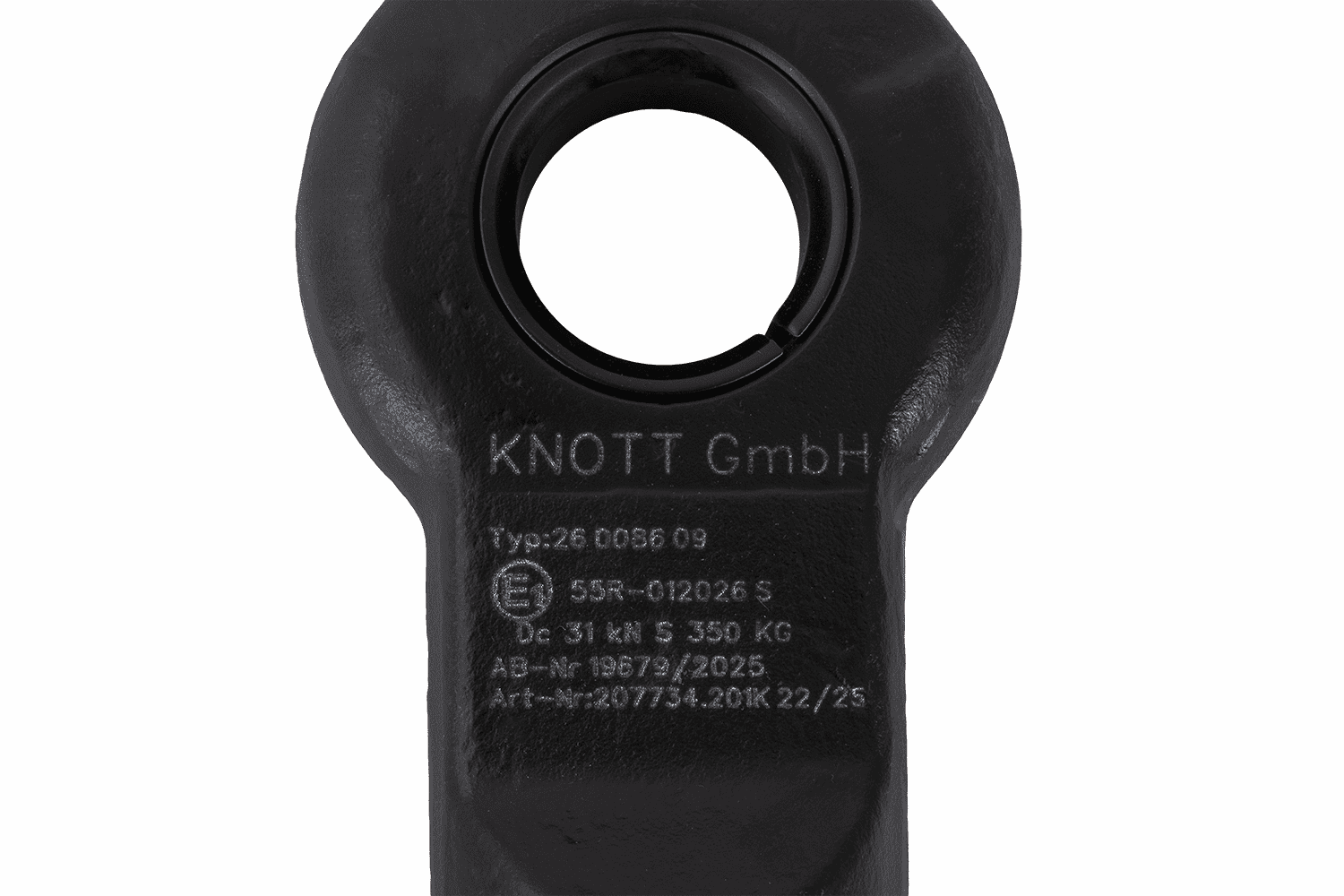 KNOTT KK7293S Augenkupplung für einen 3500 kg Anhänger mit 45 mm Rohrzugdeichsel, neue Ausführung