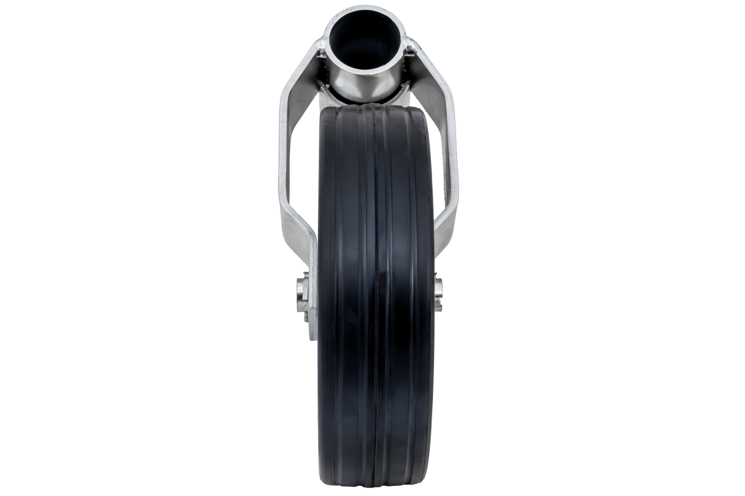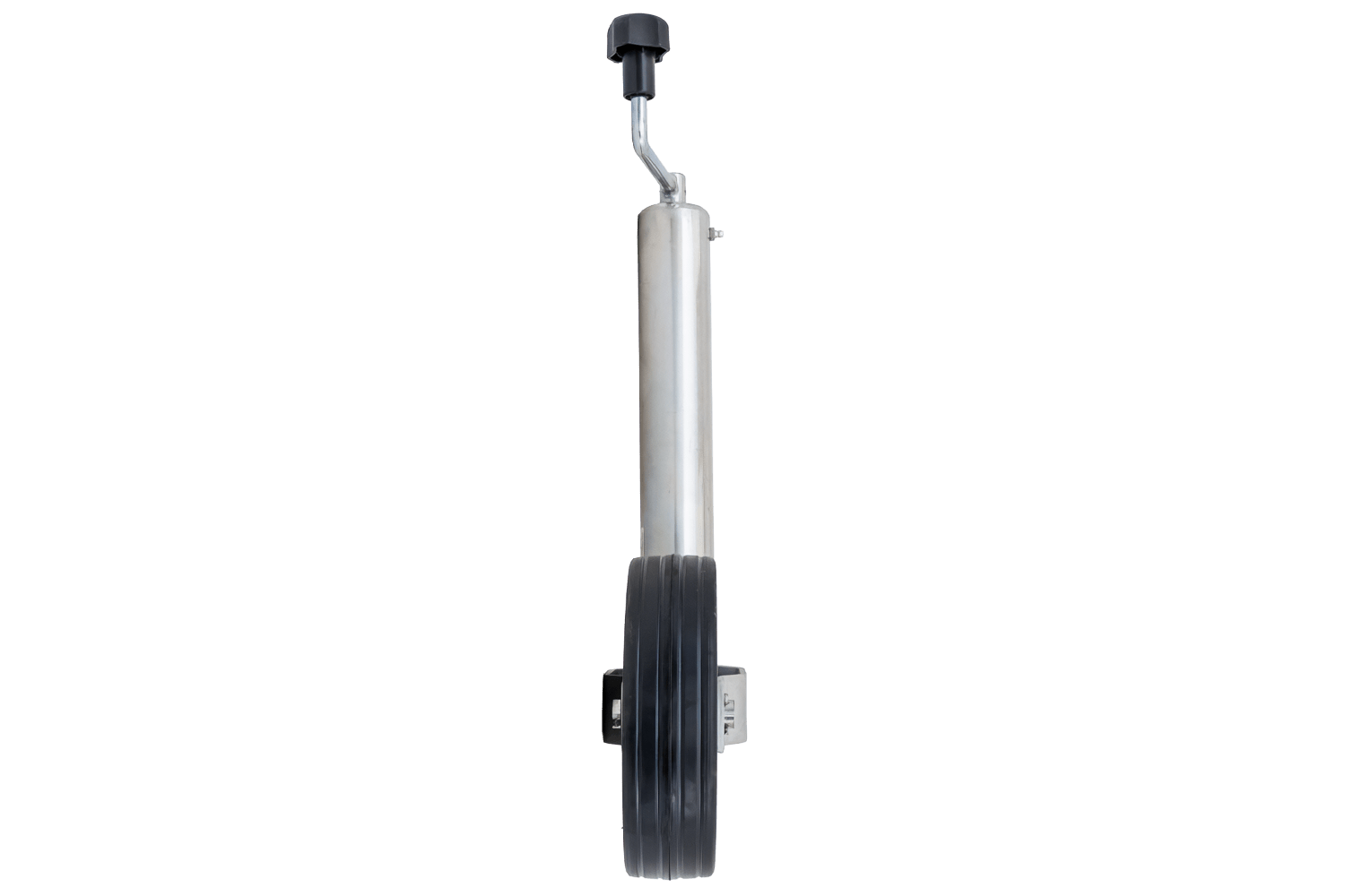 Das Stützrad hat einen Rohrdurchmesser von 60 mm und eine Ausdrehlänge (Hub) von 230 mm . Das Element ist verzinkt , was es wirksam vor Korrosion und rauen Witterungsbedingungen schützt. Das Vollgummirad in Kombination mit der Stahlfelge sorgt für zuverlässiges Rollen und komfortables Manövrieren, auch auf unebenen Oberflächen.