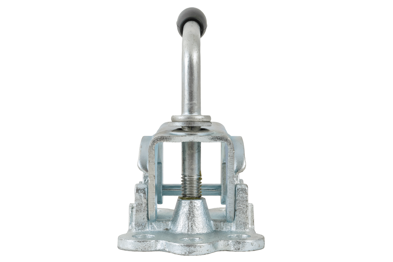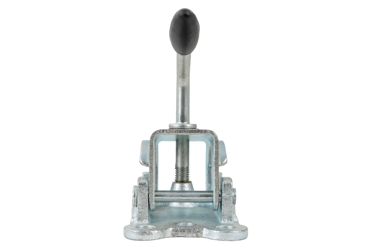 Der massive Gusskörper ist hochsteif und widerstandsfähig gegen Belastungen beim Rangieren des Anhängers. Die galvanische Verzinkung schützt das Element vor Korrosion unter typischen Betriebsbedingungen (Regen, Schlamm, Streusalz) und stellt sicher, dass die Klemme ihre Funktionalität und Ästhetik lange behält. Der ergonomische Hebel ermöglicht ein einfaches Spannen und Lösen mit einer Hand.