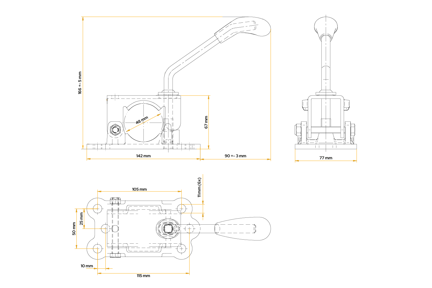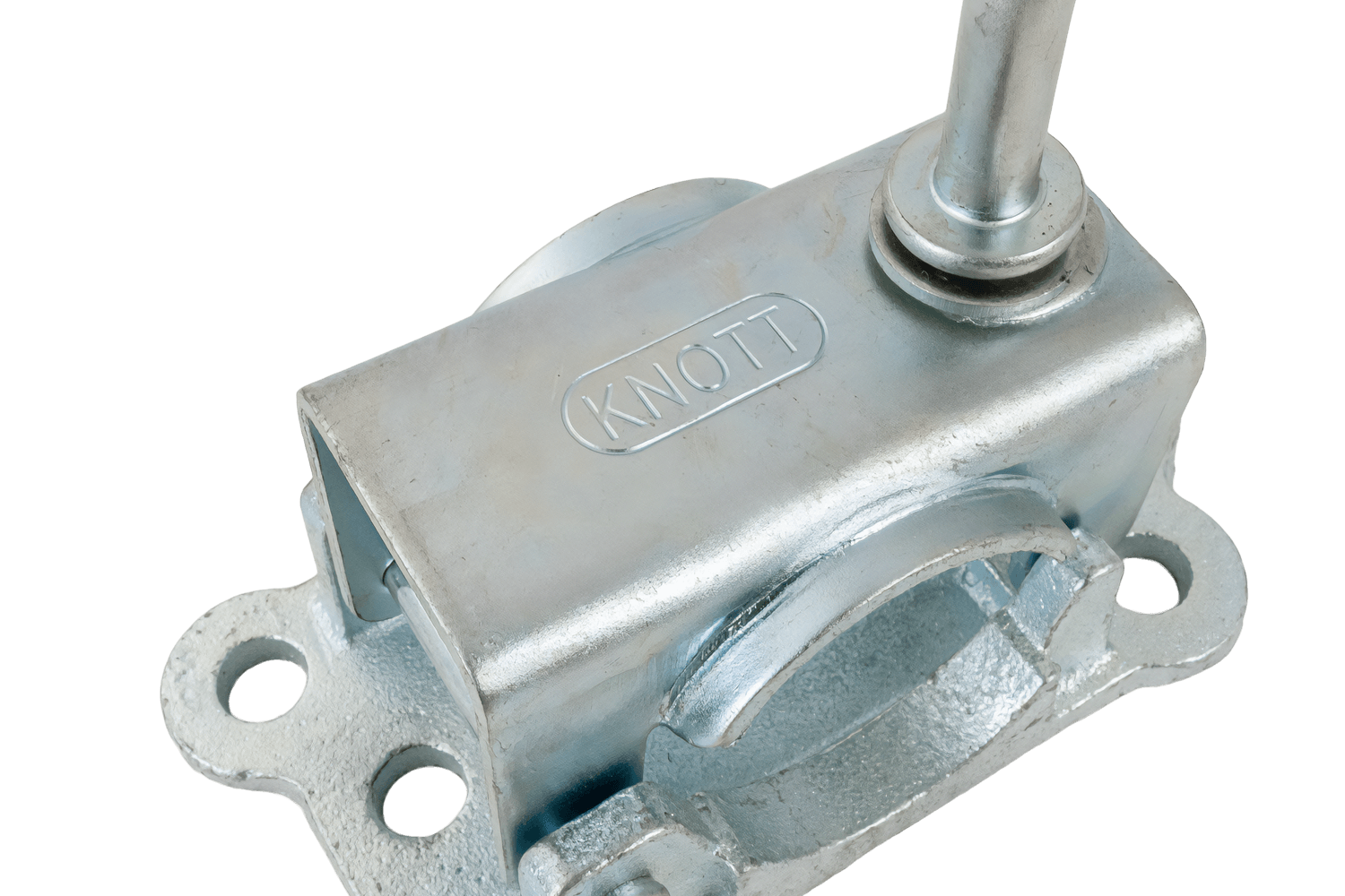 Die KNOTT 4802869X Stützradklemme/Klemme dient zur Montage von Stützrädern mit einem Rohrdurchmesser von 48 mm . Der Sockel verfügt über Befestigungslöcher mit einem Abstand von 150 x 50 mm und einem Durchmesser von 11 mm. ermöglicht Ihnen die schnelle Befestigung der Halterung am Rahmen oder an der Deichselhalterung. Der Druckhebel sorgt für sicheren Halt am Rohr, reduziert Schlupf und Vibrationen und ermöglicht eine schnelle Einstellung der Radhöhe oder die vollständige Demontage für Transport oder Service.