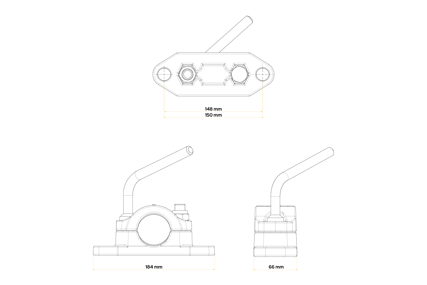 Die Stützradklemme/Klemme 6F5090.001 von KNOTT dient zur Befestigung von Stützrädern mit Wellrohr mit 48 mm Durchmesser . Der Sockel verfügt über Befestigungslöcher mit 147 mm Abstand und 19 mm Durchmesser. ermöglicht Ihnen die schnelle Befestigung der Halterung am Rahmen oder an der Deichselhalterung. Der Druckhebel sorgt für sicheren Halt am Rohr, reduziert Schlupf und Vibrationen und ermöglicht eine schnelle Einstellung der Radhöhe oder die vollständige Demontage für Transport oder Service.