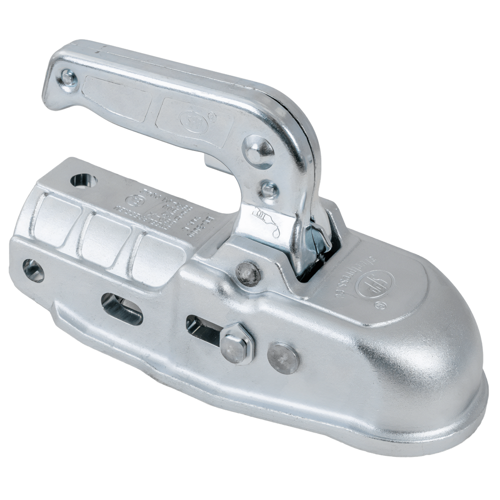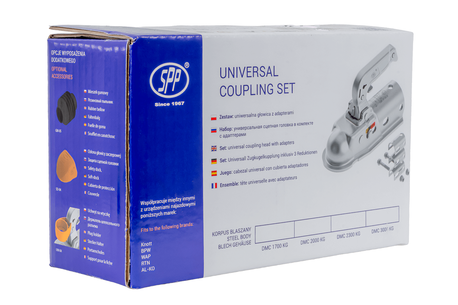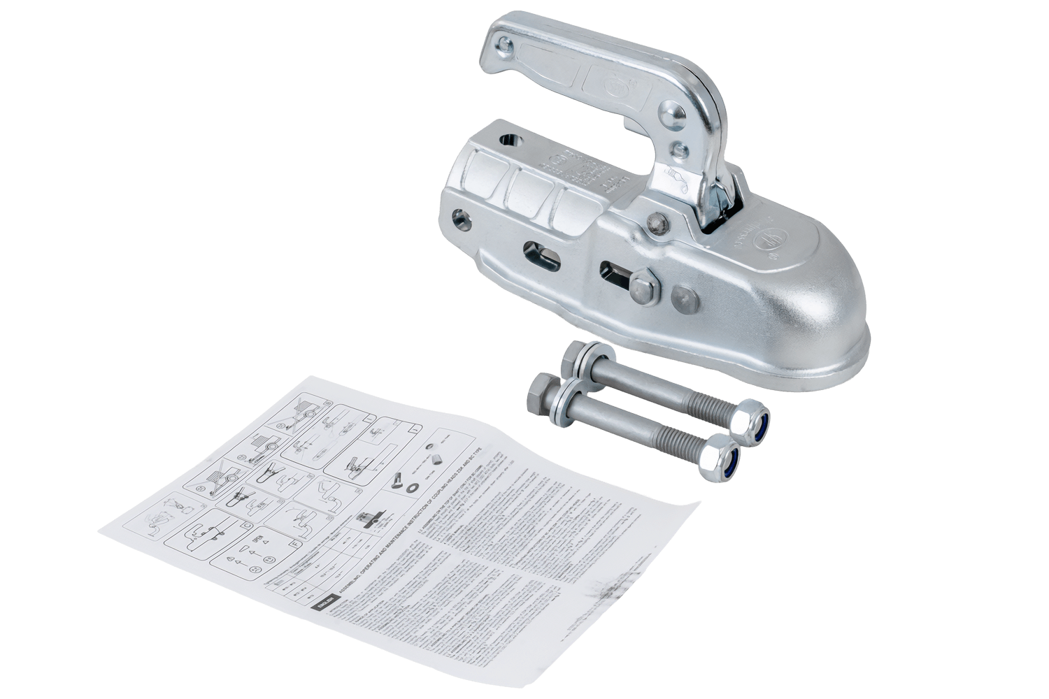 - Die Gusseisen-Kugelkopfkupplung BC-3000C-00-00 eignet sich für Anhänger mit einem Gewicht bis 3000 kg. Der Kupplungskopf ist auf einer Rohrdeichsel montiert und wird mit Adaptern geliefert, die die Kompatibilität mit Auflaufeinrichtungen mit einem Gleitro