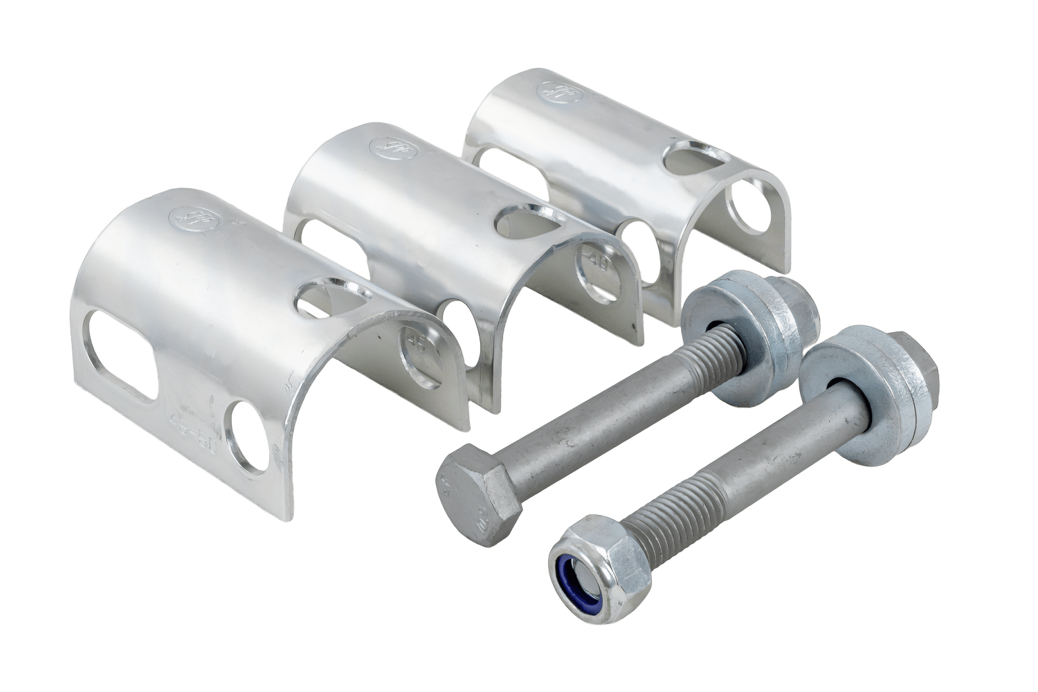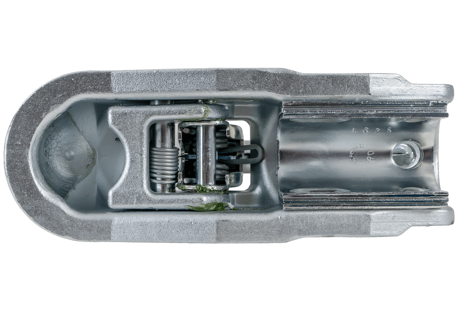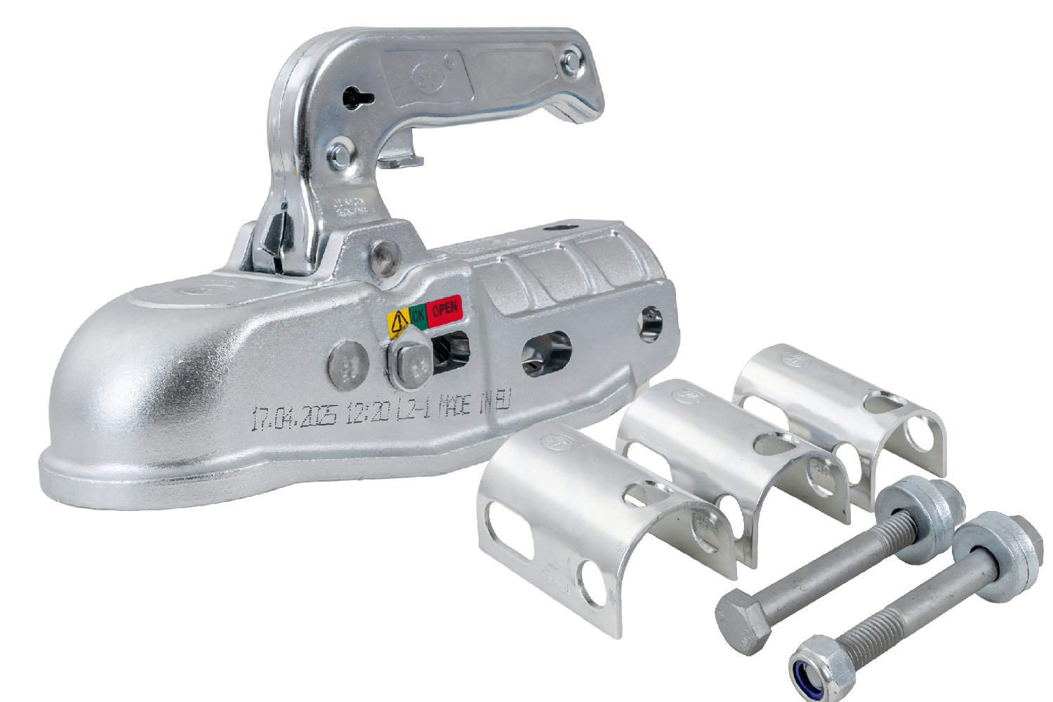 Das Kit besteht aus einem Kupplungskopf, Reduzieradaptern und Befestigungsschrauben. Die Adapter machen den Kupplungskopf kompatibel mit Auflaufeinrichtungen mit einem Gleitrohrdurchmesser von 35 mm bis 50 mm .