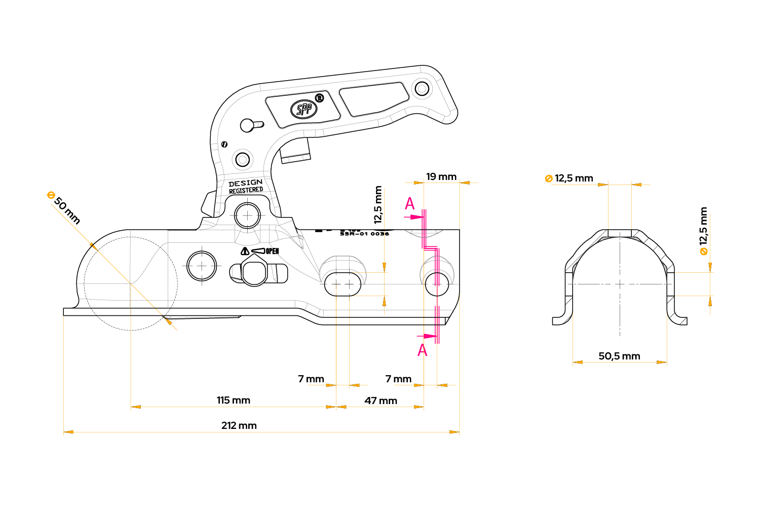 STEELPRESS BC-1200C Kugelkopfkupplung für 1200kg Anhänger mit 50mm Rohrdeichsel