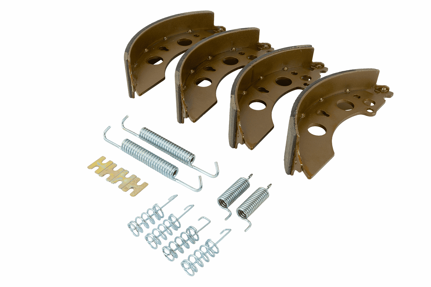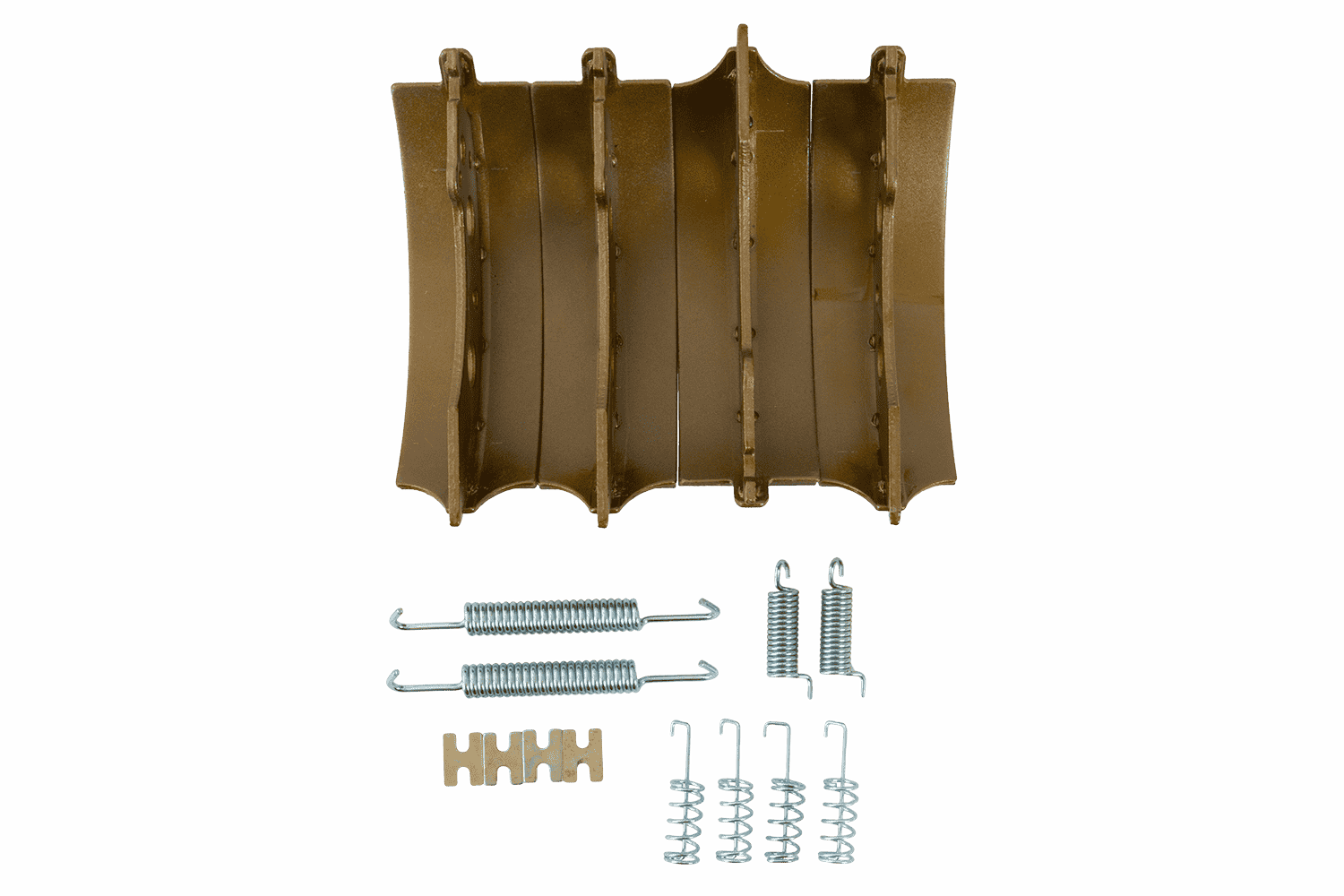 Bremsbacken sind Reibungselemente, die in der Trommel wirken. Beim Bremsen dehnen sie sich nach außen aus und pressen ihren Belag gegen die Trommeloberfläche, wodurch die zum Abbremsen erforderliche Reibung entsteht . Sie werden in Anhängern, Maschinen und Nutzfahrzeugen eingesetzt. Abgenutzte Backen (dünner Belag, Risse, Überhitzung, ungleichmäßiges Bremsen) sollten paarweise an der Achse ausgetauscht werden, zusammen mit den Federn und nach Überprüfung des Zustands der Trommeln und des selbstnachstellenden Mechanismus, um die volle Effizienz und Stabilität des Systems wiederherzustellen.