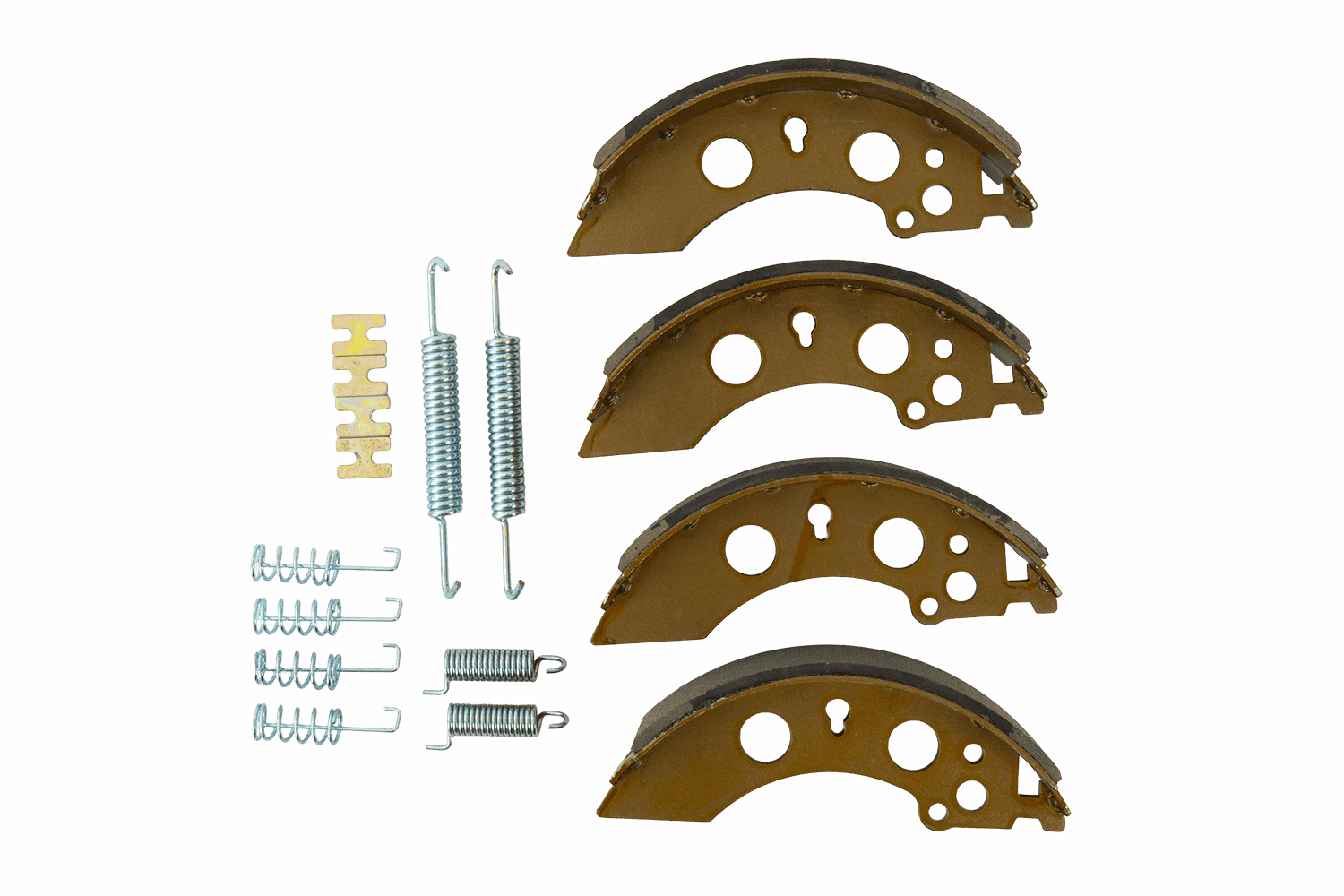 200x50 Bremsbacken – AL-KO Ersatzteil 1213889 – ist ein komplettes Reparaturset für AL-KO 2050 Trommelbremsen mit 200 mm Trommelinnendurchmesser und 50 mm Bremsbackenbreite, ausgelegt für Anhänger mit Achslasten von 1050, 1350 und 1500 kg . Das Set stellt die Systemleistung wieder her, wenn das Bremsen ungleichmäßig wird, der Bremsweg länger wird oder die Bremsbeläge abgenutzt oder überhitzt sind. Das Set enthält Bremsbacken und alle notwendigen Befestigungsfedern (Halte- und Rückholfedern) sowie Bremsscheiben und ermöglicht so einen vollständigen Austausch.