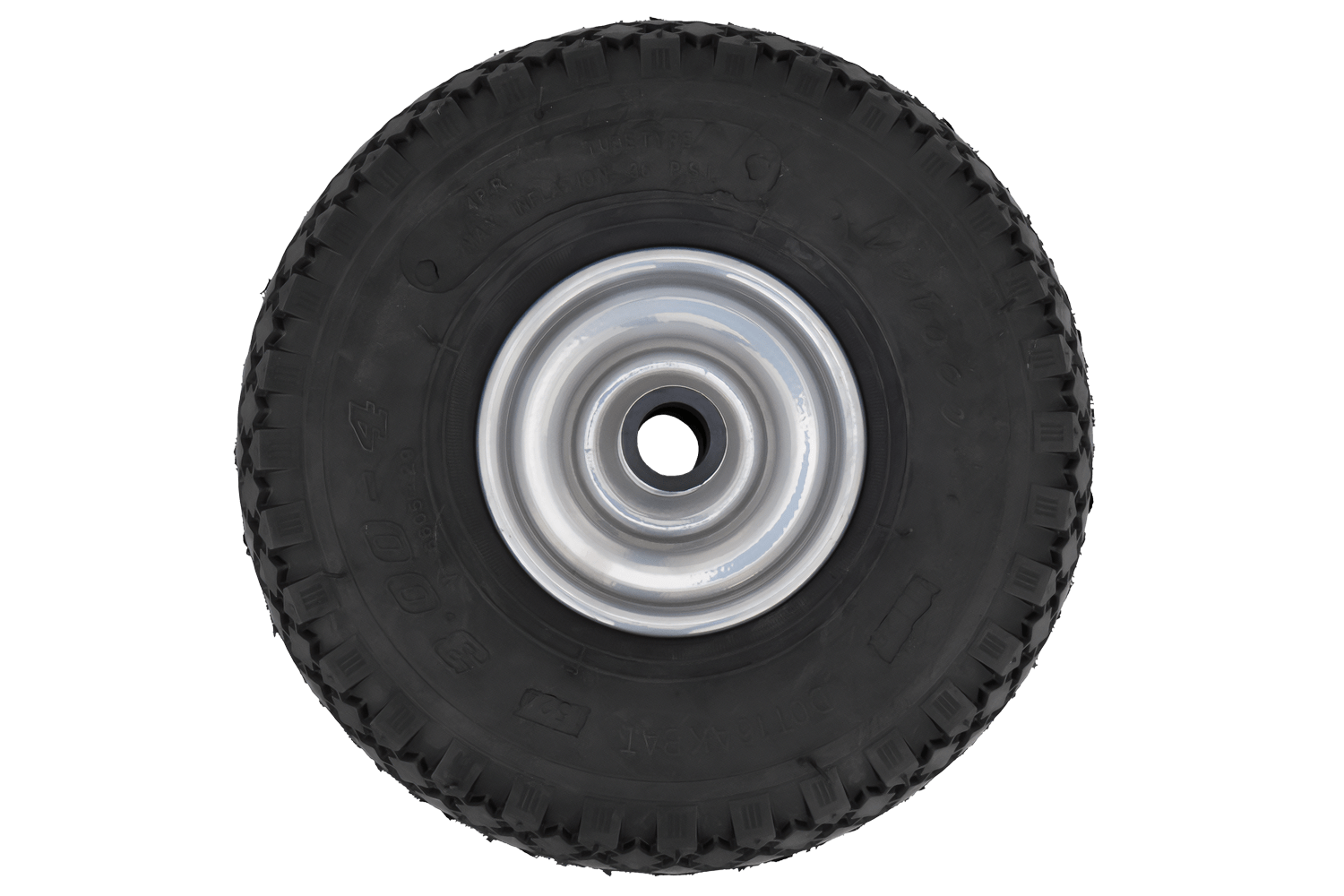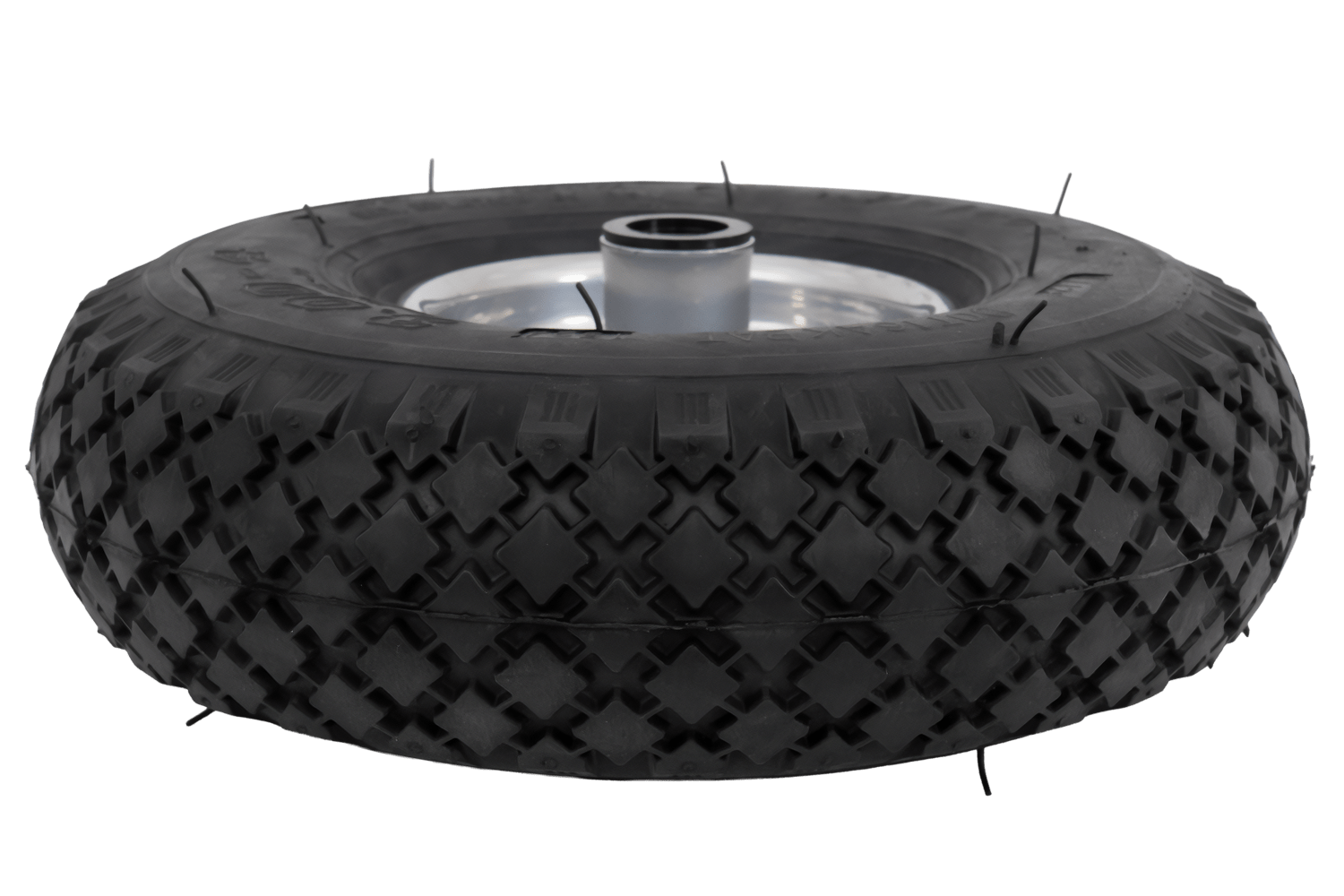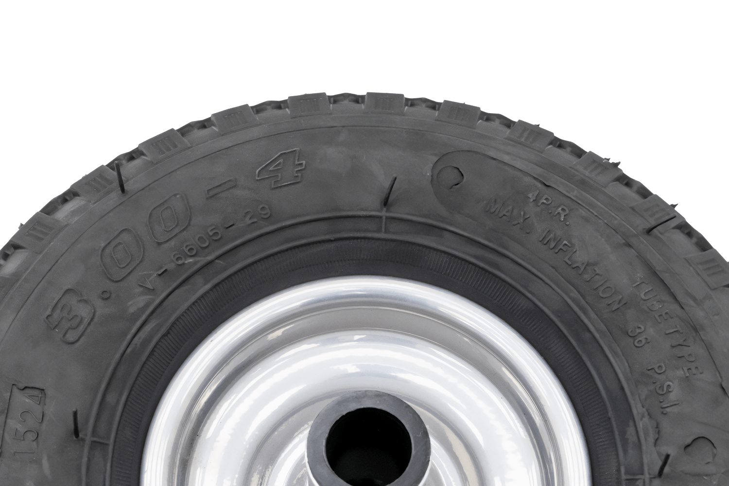 Dies ist ein Ersatz-Luftreifen für Stützräder von Anhängern. Seine Blechfelge und die Kunststofflager sorgen für einen leichten, korrosionsbeständigen Betrieb, während der Luftreifen Stöße effektiv absorbiert und so ein sanftes Rollen des Anhängers in der Einfahrt, im Hof ​​oder in der Werkstatt ermöglicht.