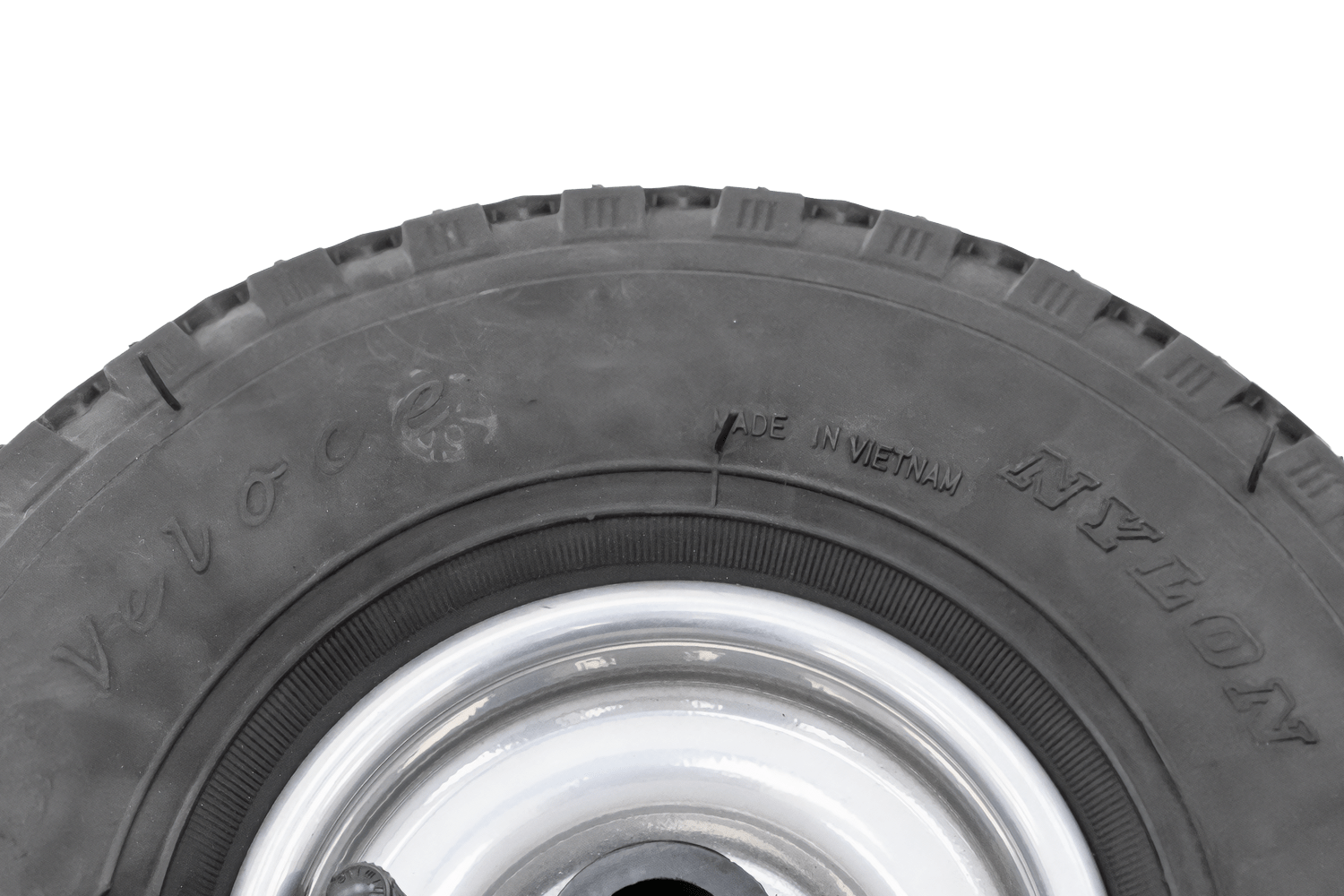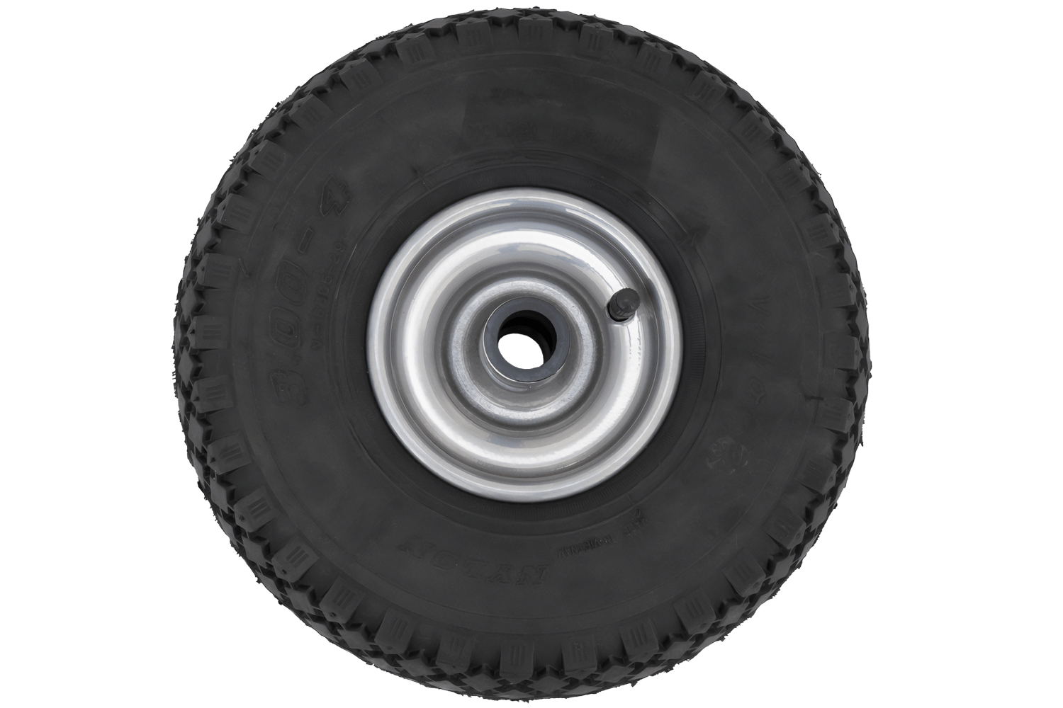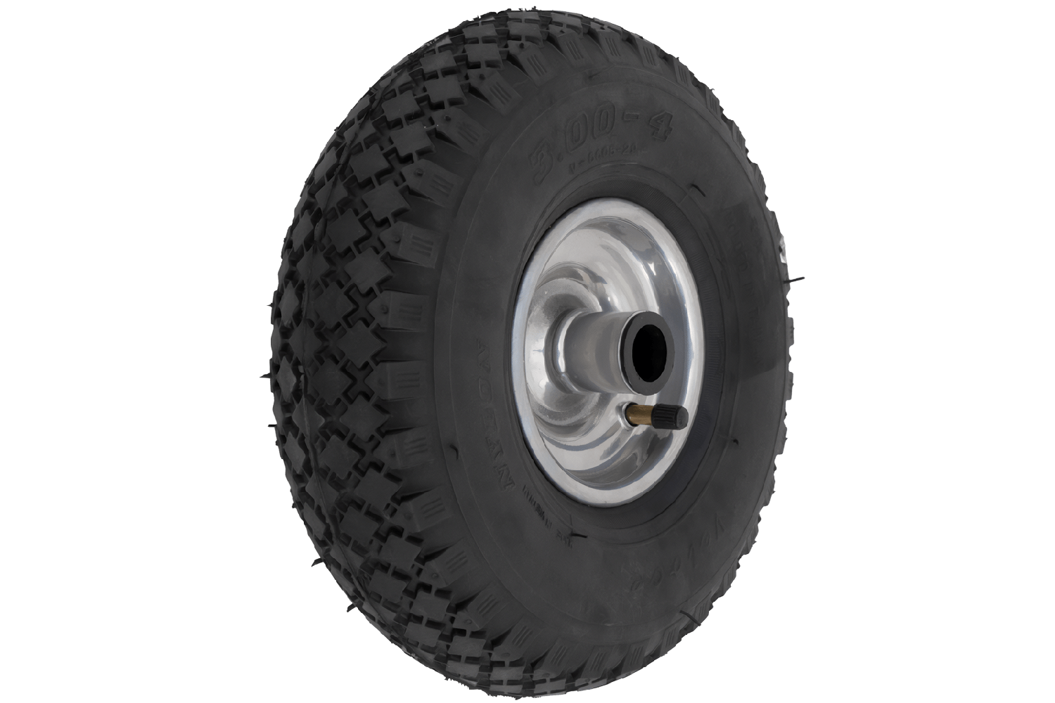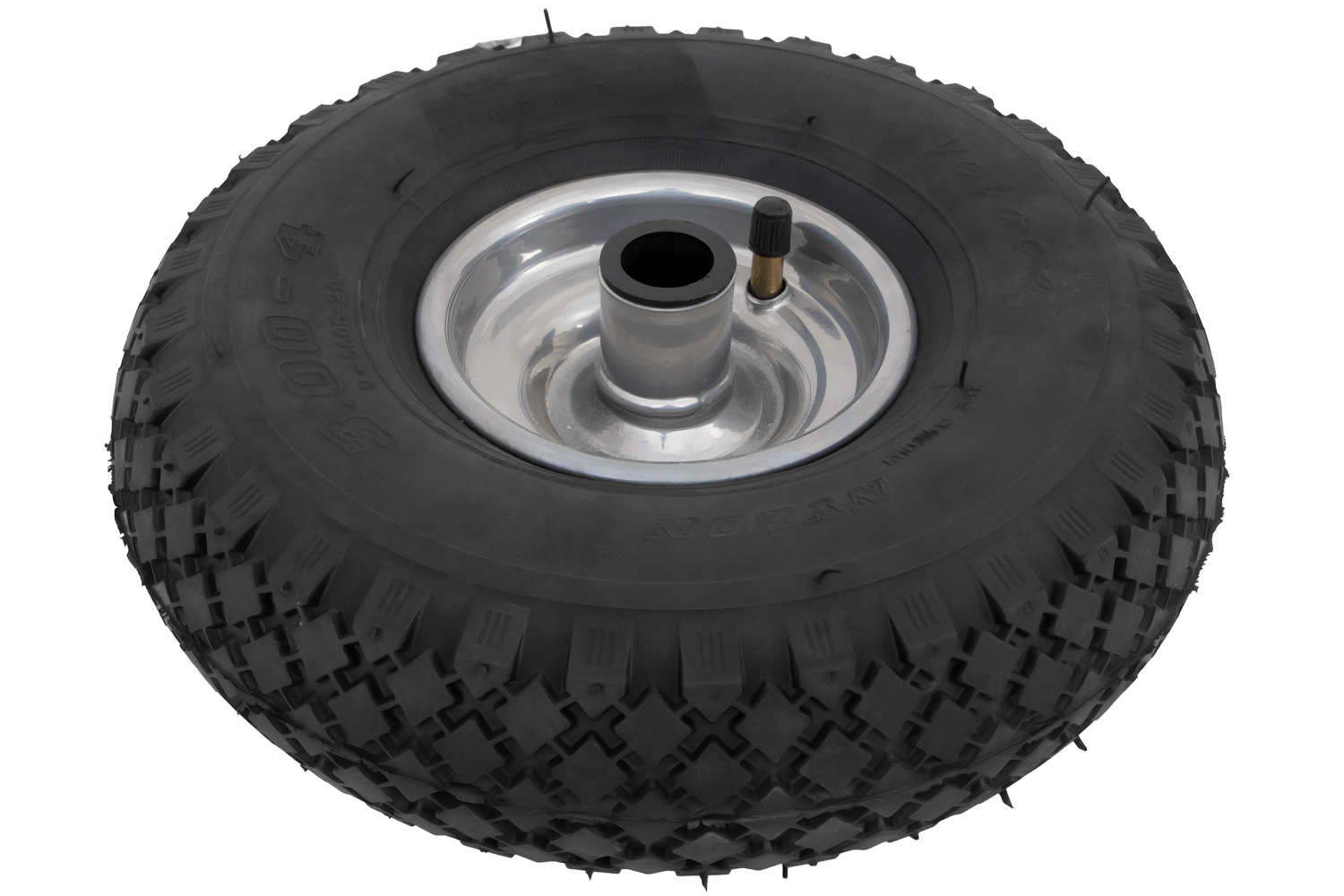 Dies ist ein Ersatz-Luftreifen für Stützräder von Anhängern. Seine Blechfelge und die Kunststofflager sorgen für einen leichten, korrosionsbeständigen Betrieb, während der Luftreifen Stöße effektiv absorbiert und so ein sanftes Rollen des Anhängers in der Einfahrt, im Hof ​​oder in der Werkstatt ermöglicht.