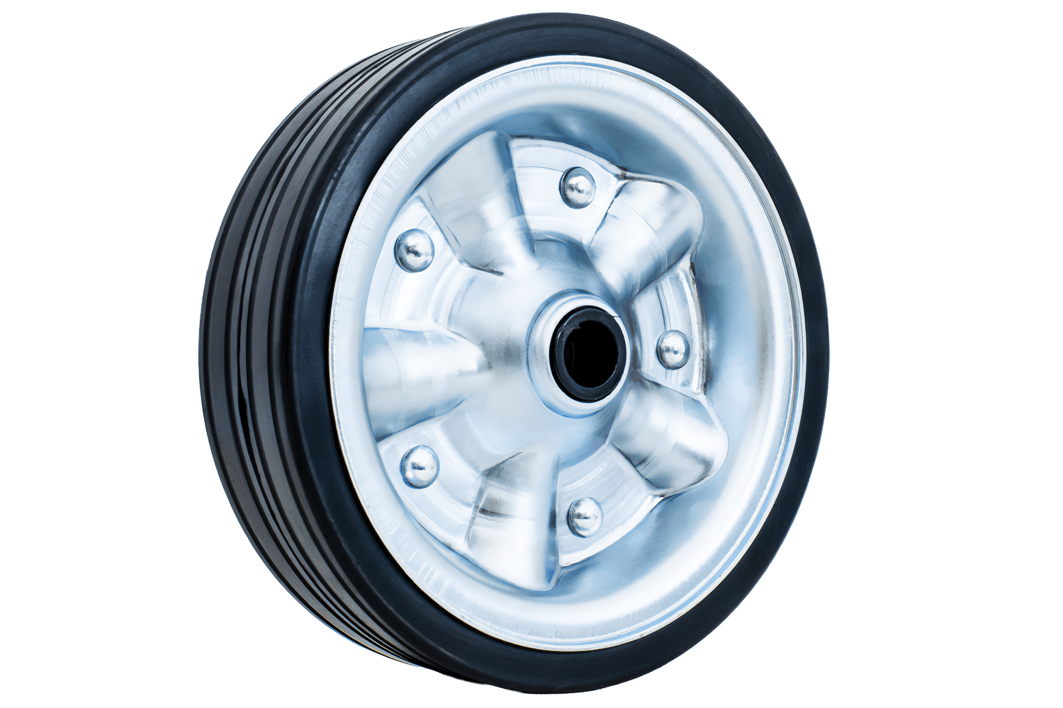 Ein Stützrad dient zur Unterstützung der Deichsel und zum manuellen Manövrieren des Anhängers außerhalb des Fahrzeugs: beim An- und Abkuppeln, beim Positionieren des Anhängers im Parkzustand oder beim Manövrieren in engen Räumen. Ein Vollgummirad ist eine gute Wahl, wenn es auf wartungsfreie und pannensichere Leistung ankommt – es muss nicht aufgepumpt werden, rollt gut auf harten Oberflächen (Beton, Pflastersteine) und das Risiko von Reifenschäden wird minimiert.