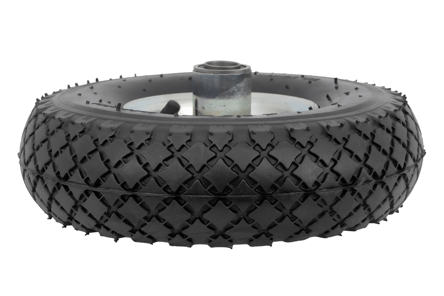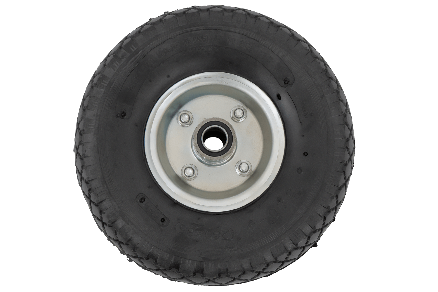 Dies ist ein Ersatzluftreifen für Stützräder von Anhängern. Die Blechfelge und die Kugellagerkonstruktion sind leicht und korrosionsbeständig. Der Luftreifen absorbiert Stöße gut, sodass der Anhänger problemlos durch die Einfahrt, den Hof oder die Werkstatt rollen kann.