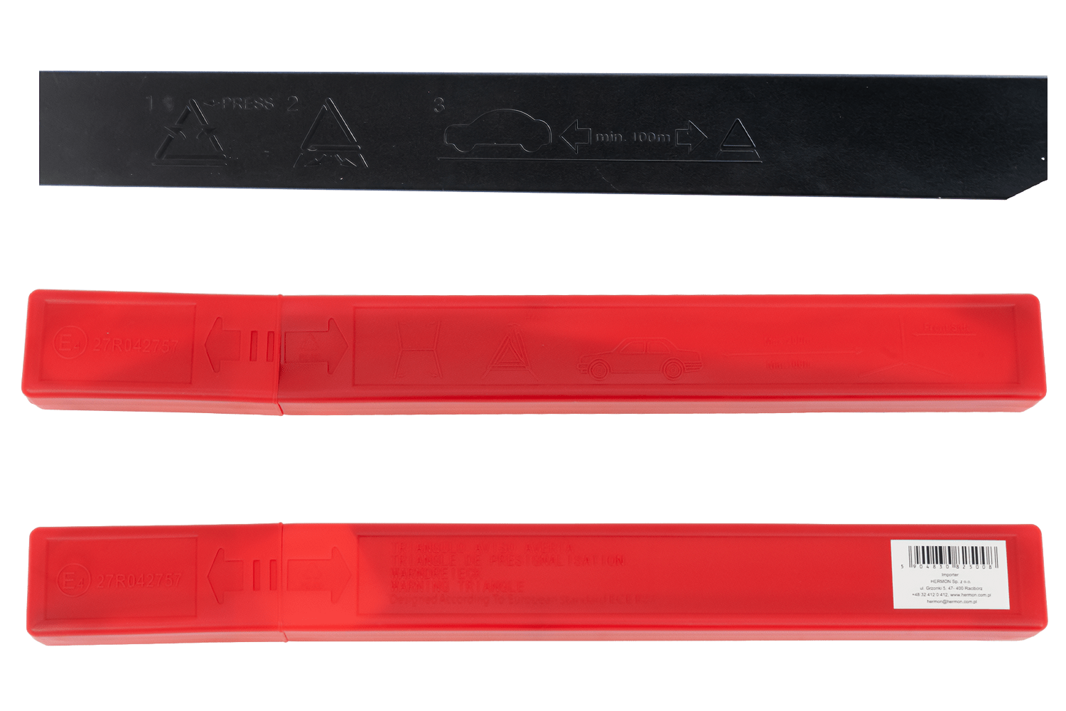 - Ein Warndreieck mit dünnen, stabilen Beinen. Es bietet hervorragende Sichtbarkeit in Notsituationen, z. B. beim Parken oder nach einem Verkehrsunfall. Ein unverzichtbares Zubehör für jedes Fahrzeug, das die Sicherheit des Fahrers und anderer Verkehrsteiln