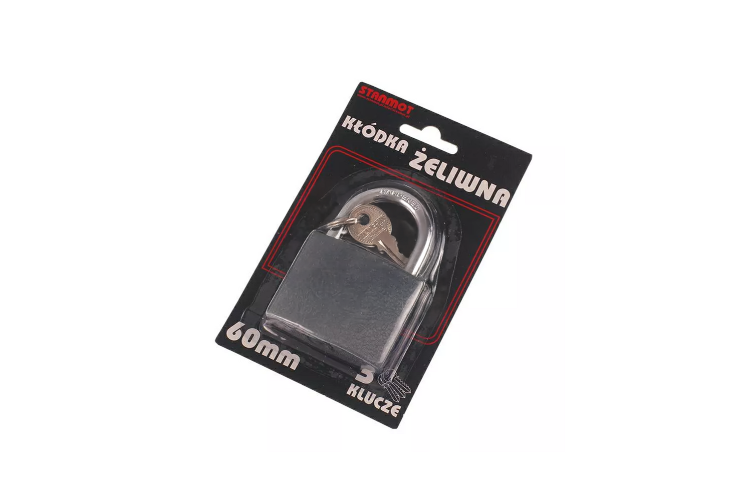 Das 60 mm große Vorhängeschloss aus gehärtetem Gusseisen bietet robuste Sicherheit aus langlebigem, schlagfestem und korrosionsbeständigem Material. Es verfügt über eine gehärtete Öse mit 8 mm Durchmesser , die hohen Widerstand gegen Schneiden und Aufbrechen bietet. Die kompakte Größe des Vorhängeschlosses ermöglicht die einfache Montage in einer Vielzahl von Schließsystemen, von Werkzeugkästen, Toren und Schränken bis hin zu Sicherheitsketten.